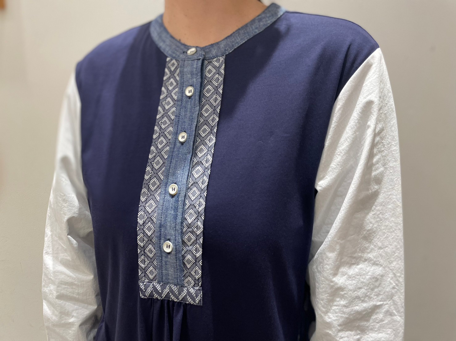akaneらしい異素材合わせのワンピースは1枚でストンと着れるアイテム。