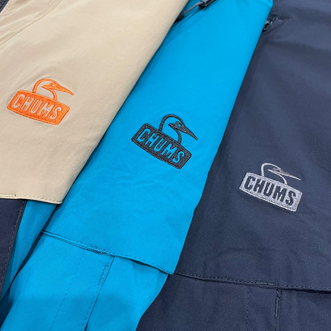 フロント左胸にブービーフェイスロゴ刺繍、左袖にはCHUMSロゴプリントを大胆に配したデザイン。