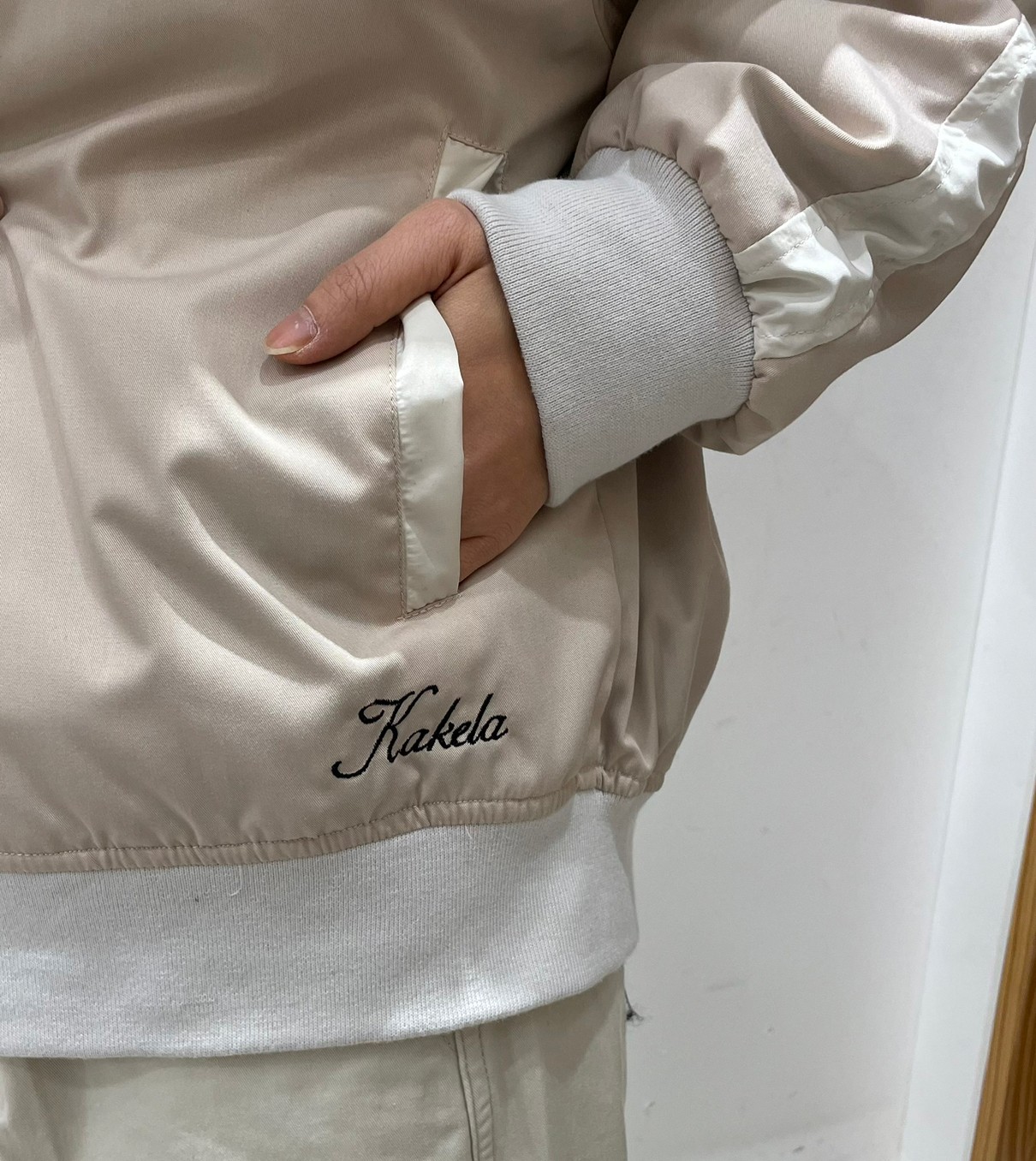 表からは見えないですが、裏地に施されたブランドロゴの刺繍も、ジャケットを脱いだ時にパッと目を惹くさりげないポイントに。