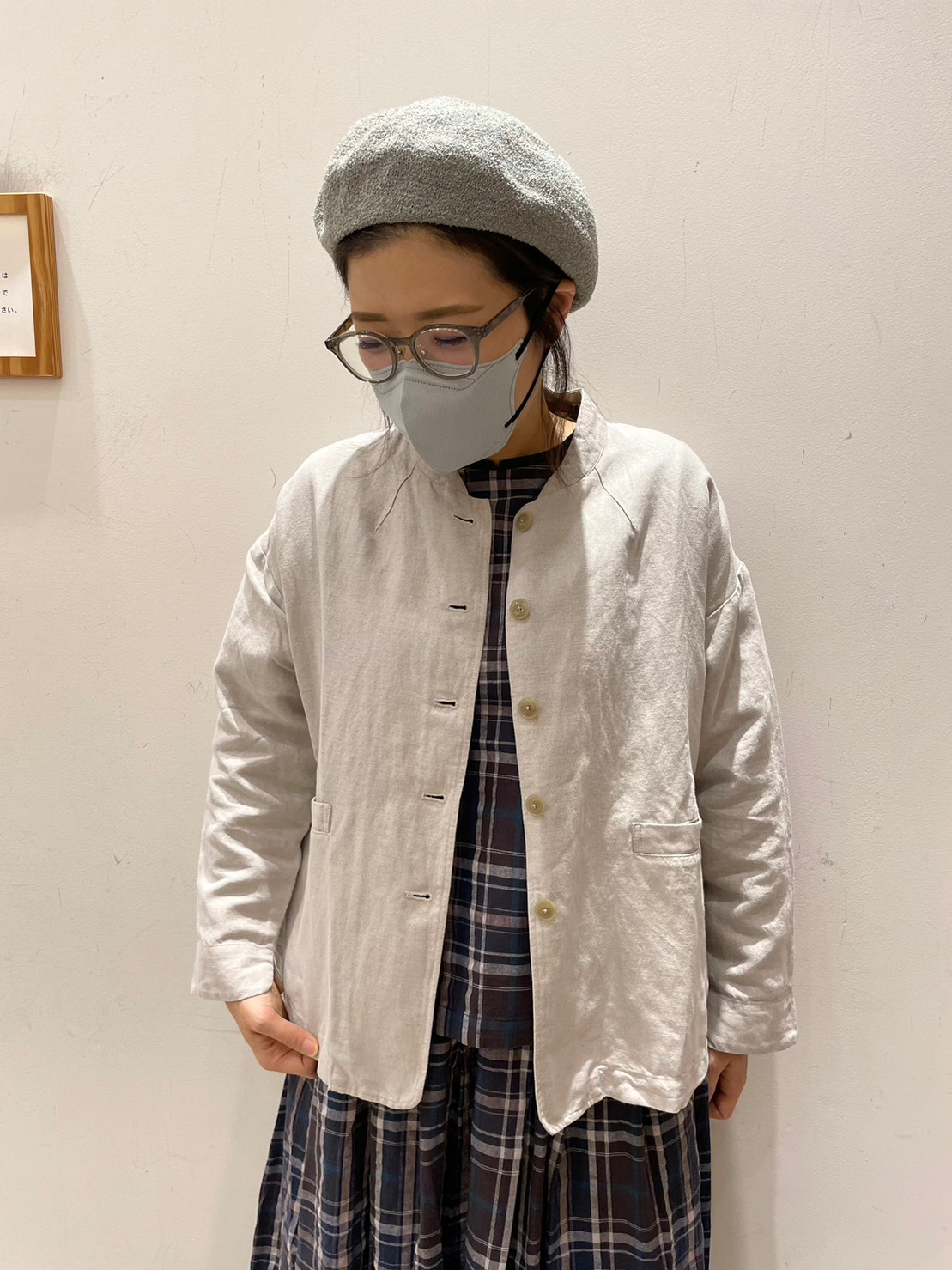 ナチュラルな雰囲気のコットンリネンスタンドカラージャケット。