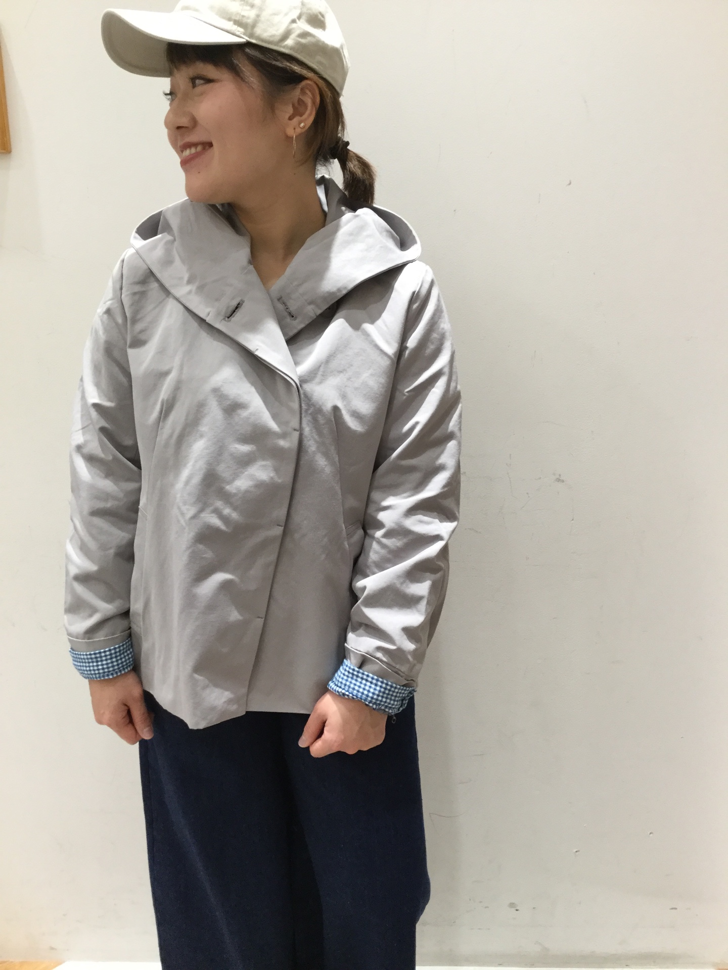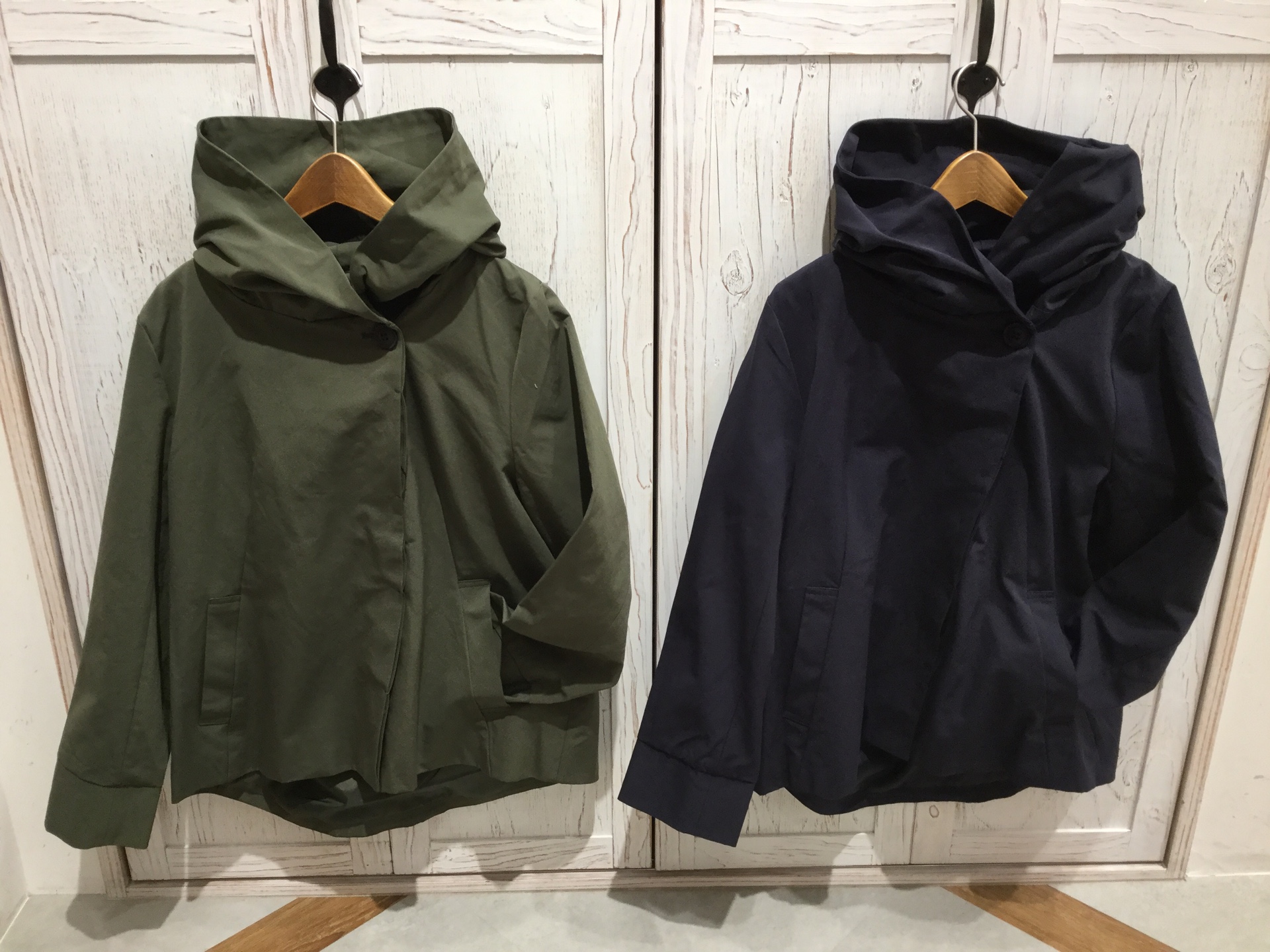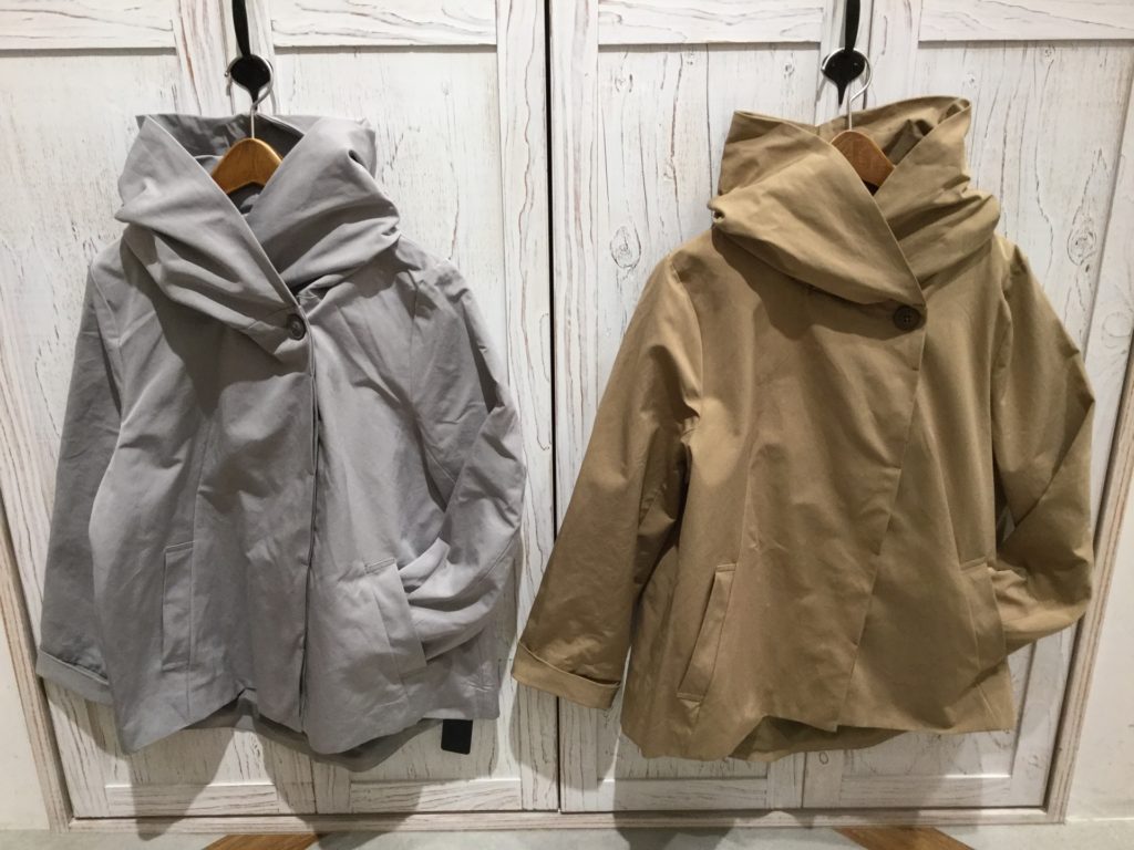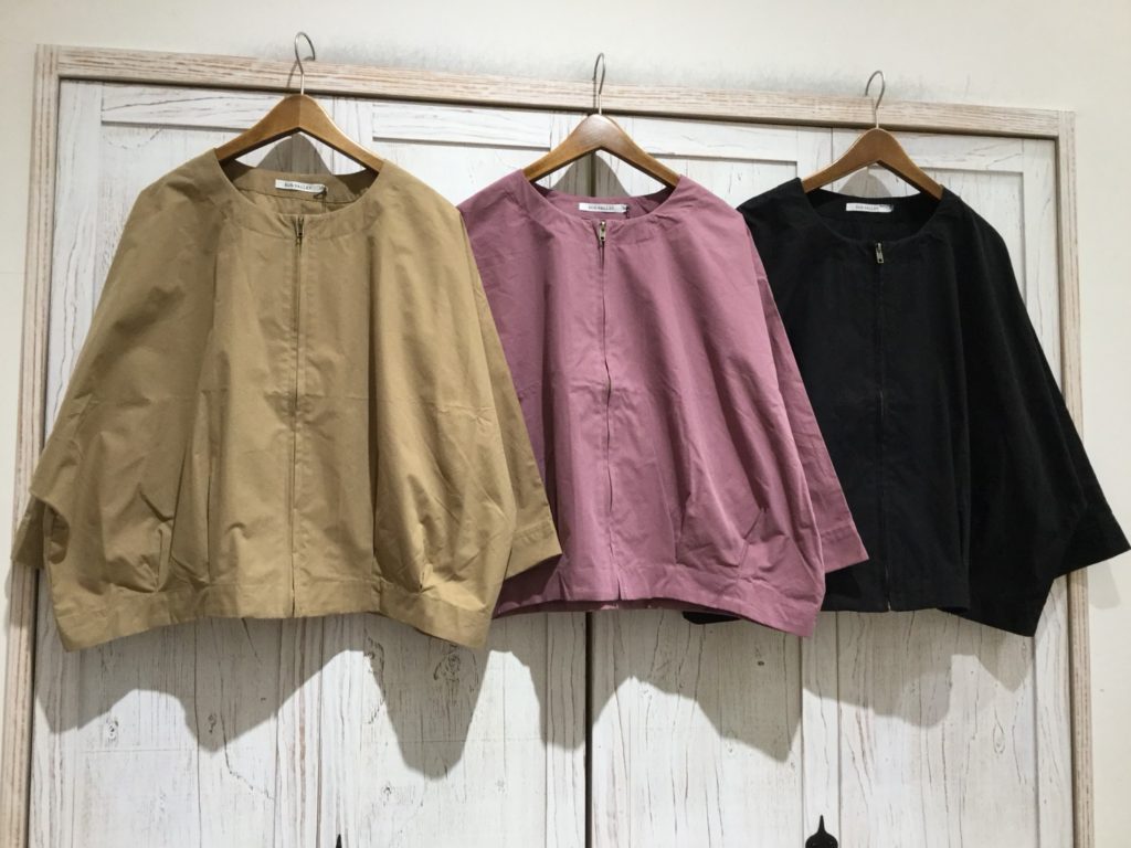 【コットンナイロンノーカラードルマンジャケット】
