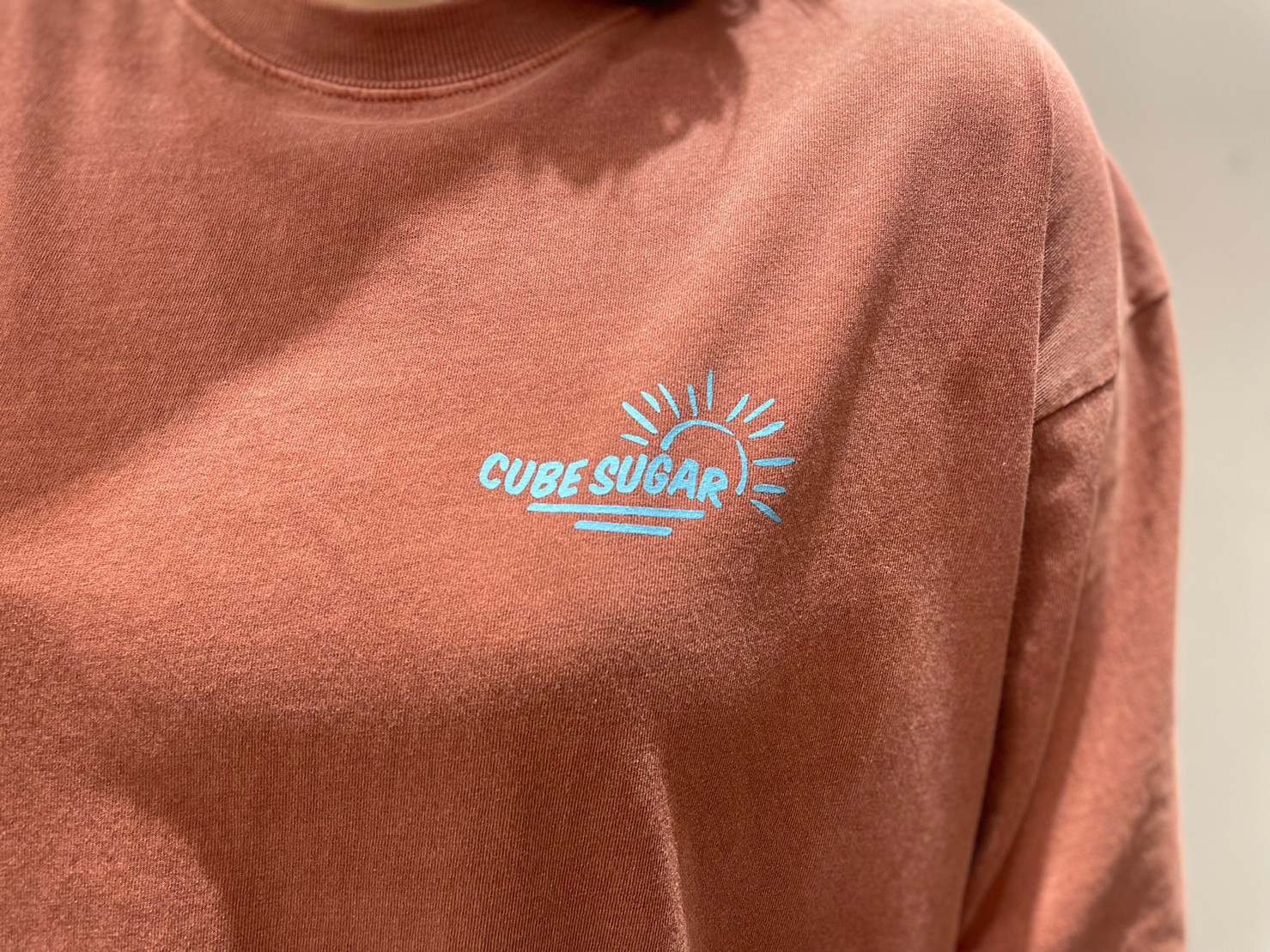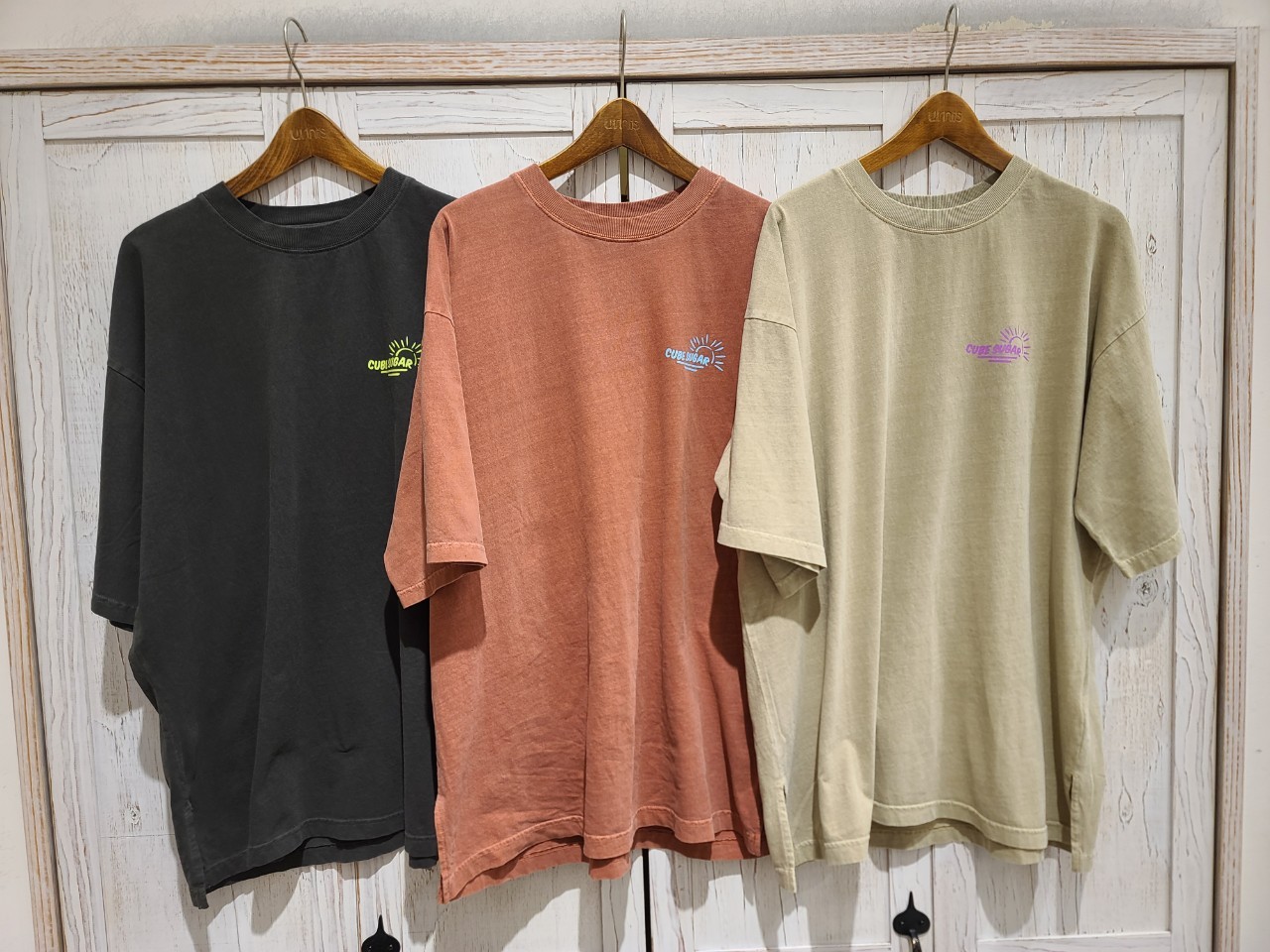 ピグメント加工が施されたヴィンテージ感たっぷりの色合いと、蛍光のプリントが素敵です。