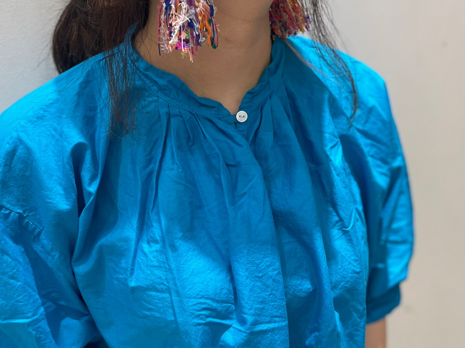 バックの首元にも小さなギャザー入り。