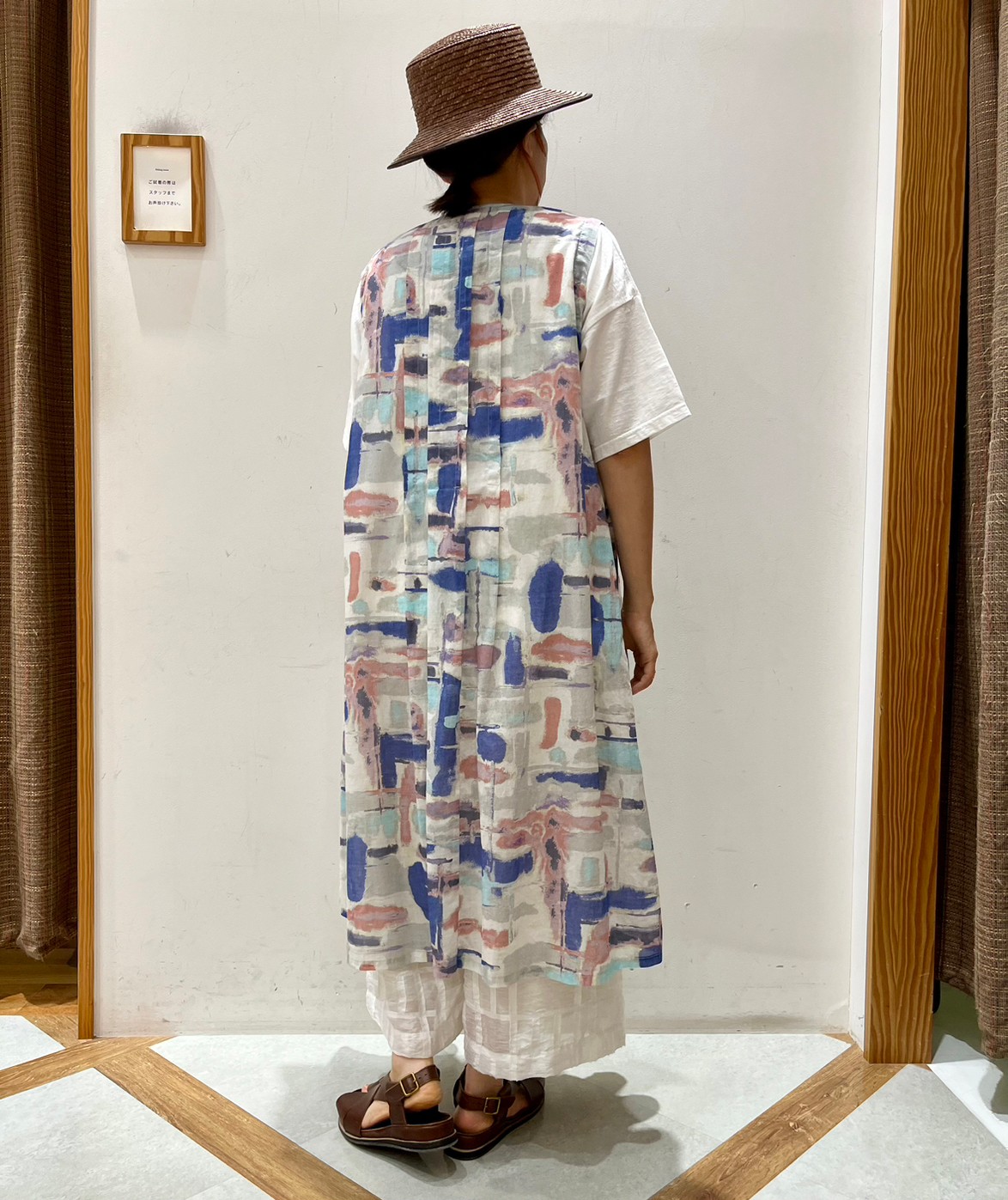 爽やかなホワイトベースに柔らかいカラーのノースリーブワンピースをジレとして使いました〜!