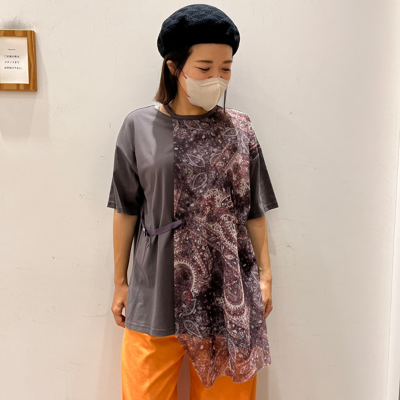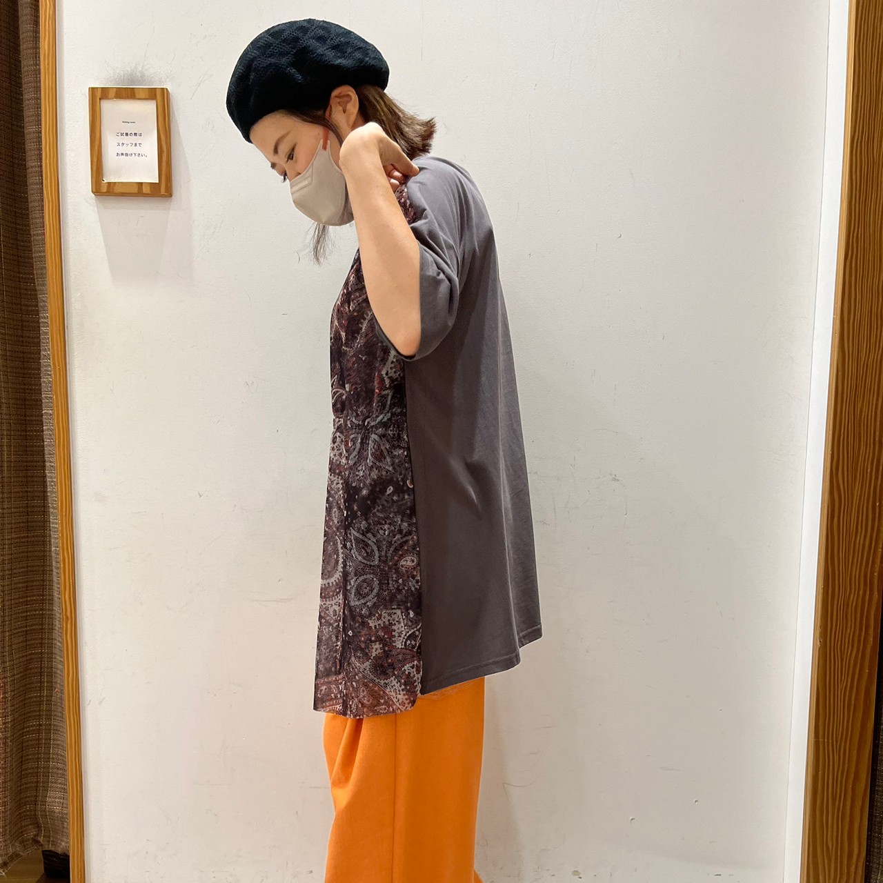 今年の夏は長そうやなぁ…ってことで、夏素材のアイテムの濃いめカラーにして長い期間ご着用頂けるような着こなしにしました〜!