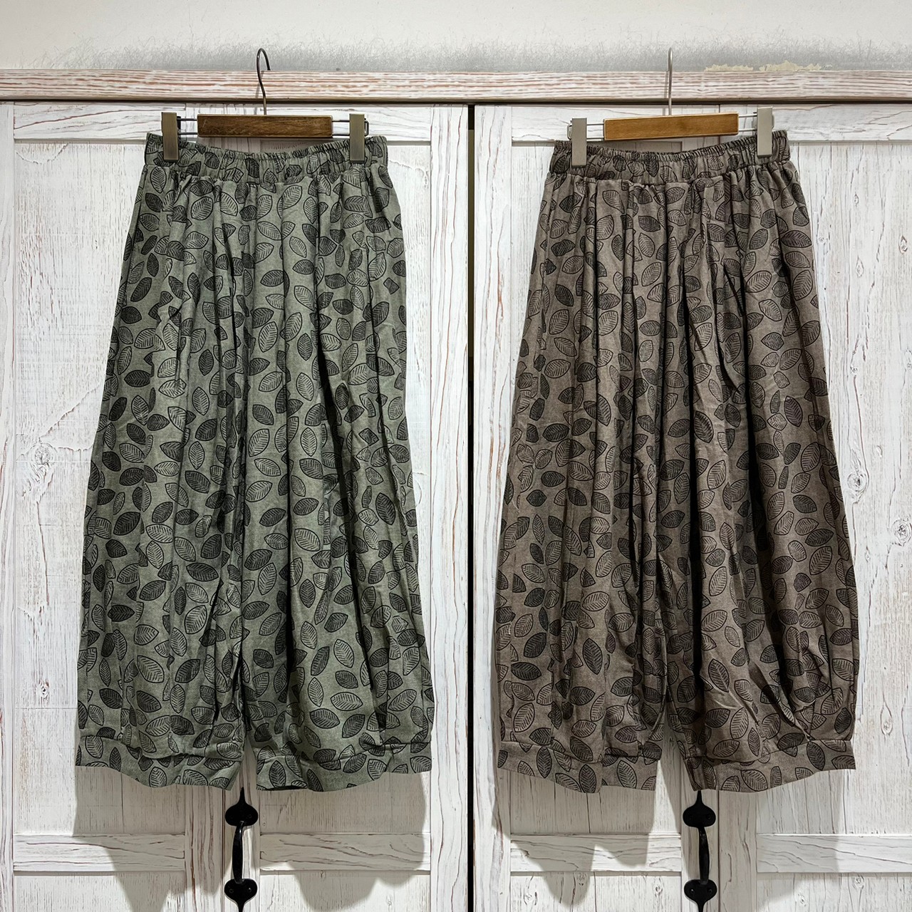 見た目ではしっかりとした生地のように見えますが、今すぐご着用いただけそうな柔らかい綿100%生地を使用した、大きく丸みをつけた立体的なシルエットのバルーンパンツ。