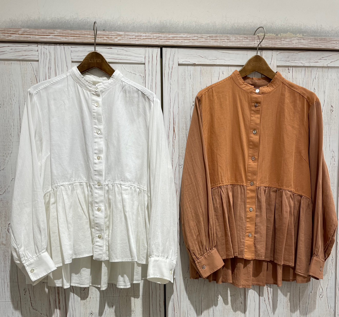 ソフトな綿シフォン素材でたっぷりギャザーのブラウス。