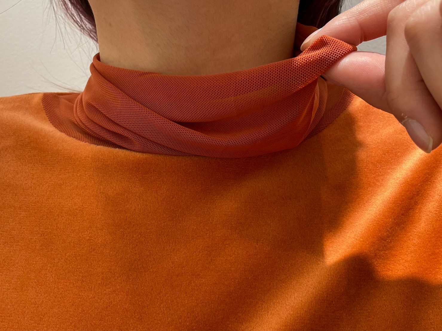 詰まり気味の首元になっています。