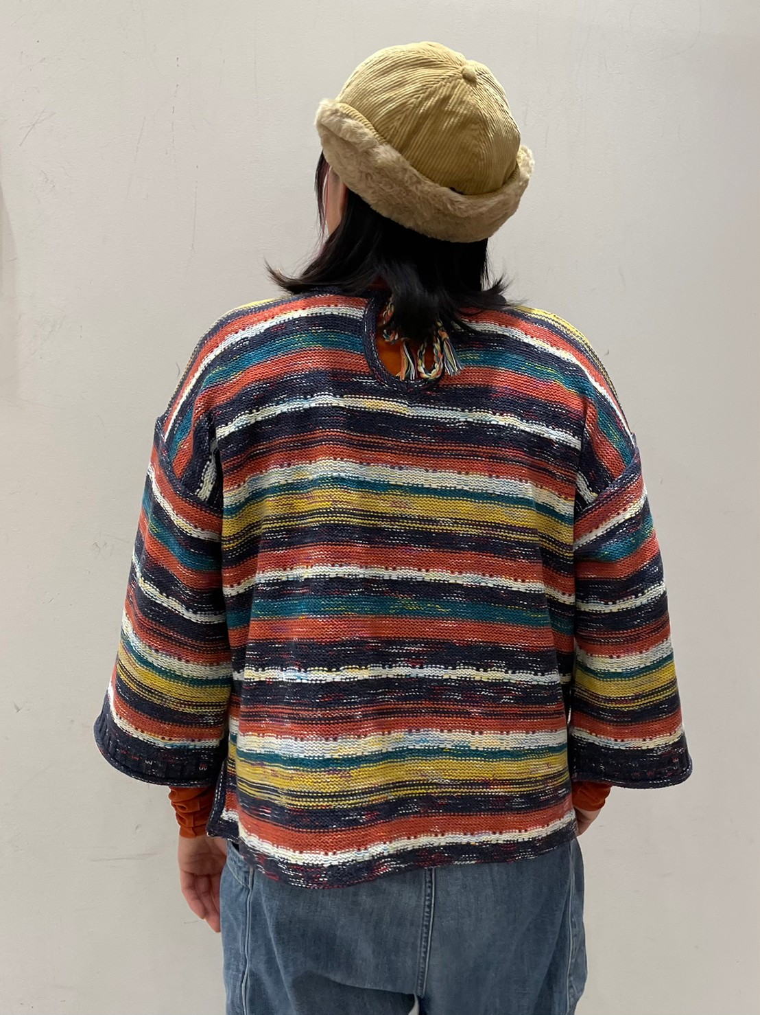 ▽かすり染前後着マルチボーダープルオーバー