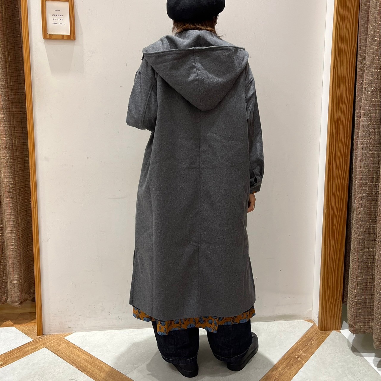 ひざ下あたりまでをカバーする長めの着丈であたたかく、足運びをジャマしないようサイドスリットが入っています。