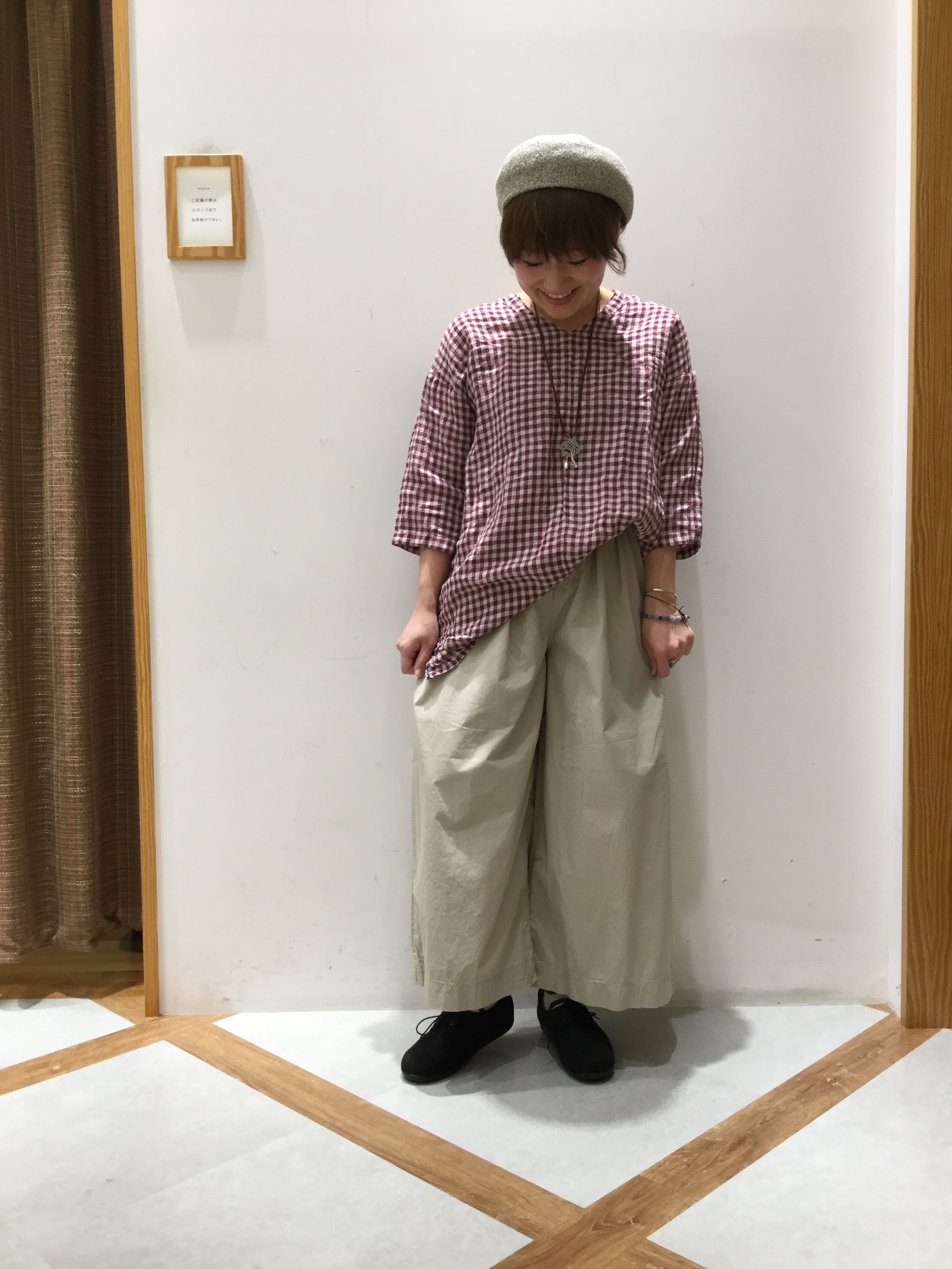 【リネンムラ染めギンガムチュニック】