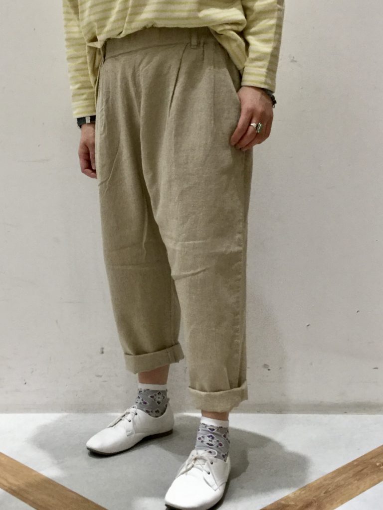 【綿麻平織りパンツ】