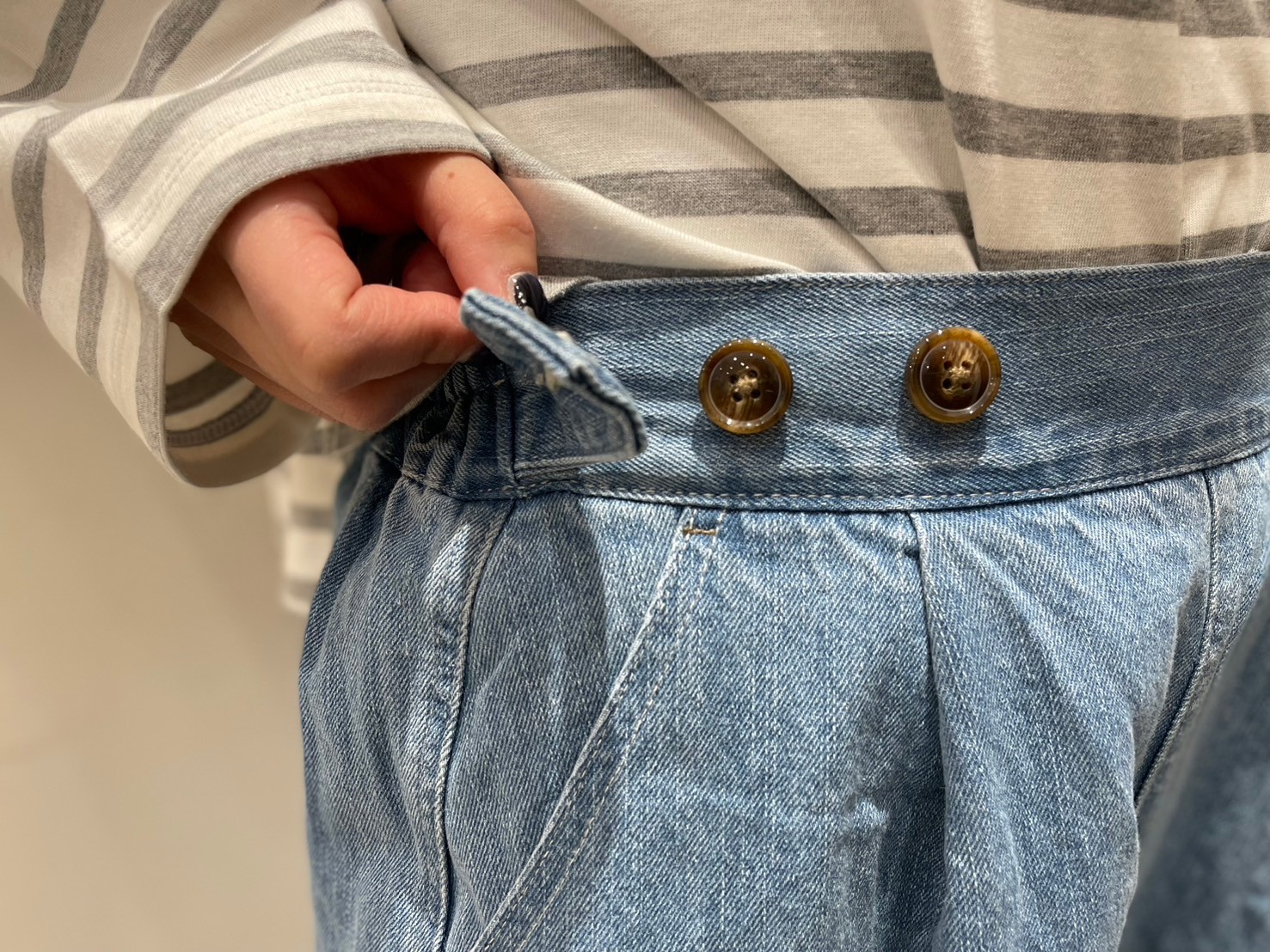 ウエスト部分のボタンがアクセント。