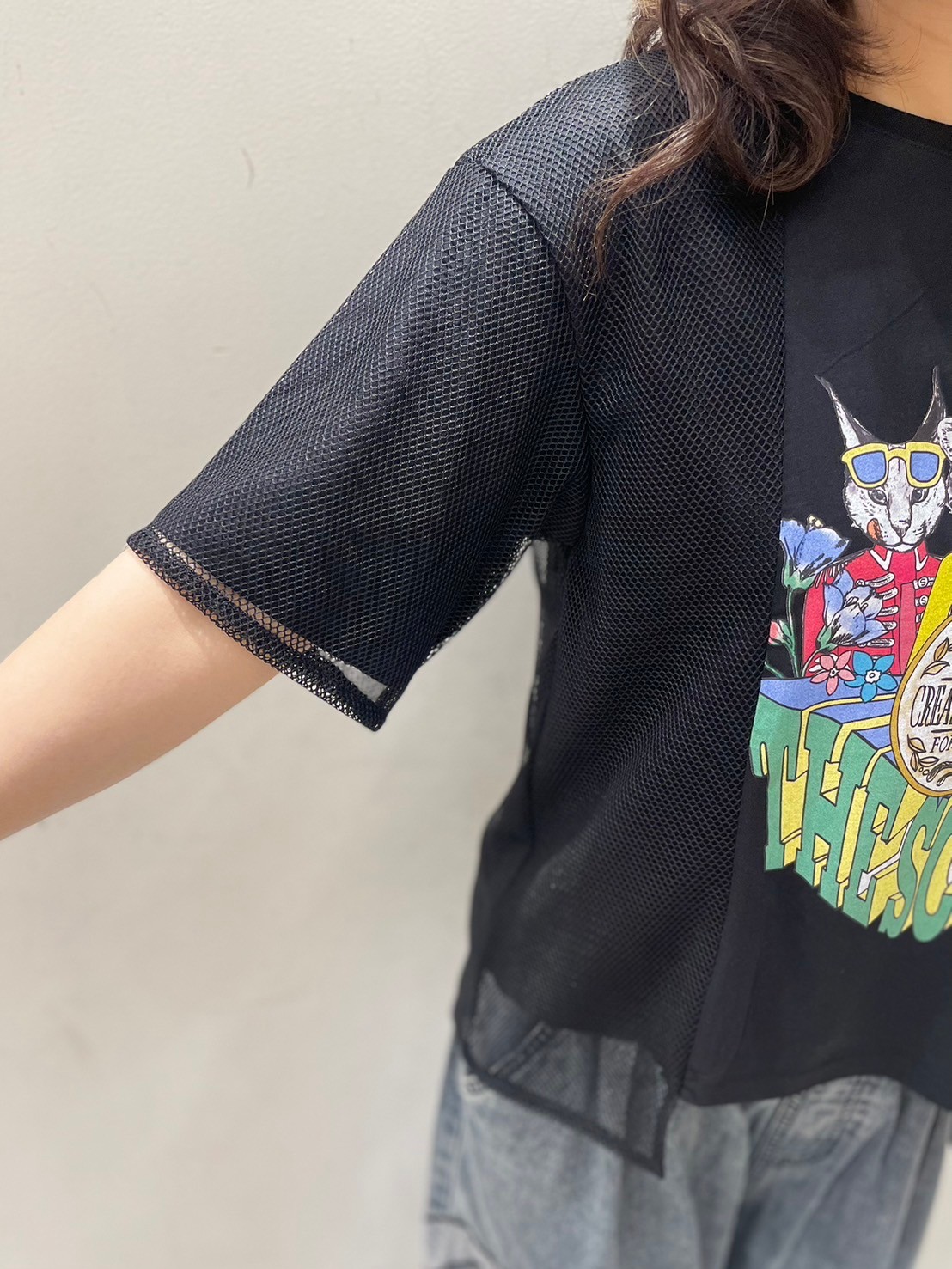 右腕にはメッシュ生地を重ねて涼しげな印象に。