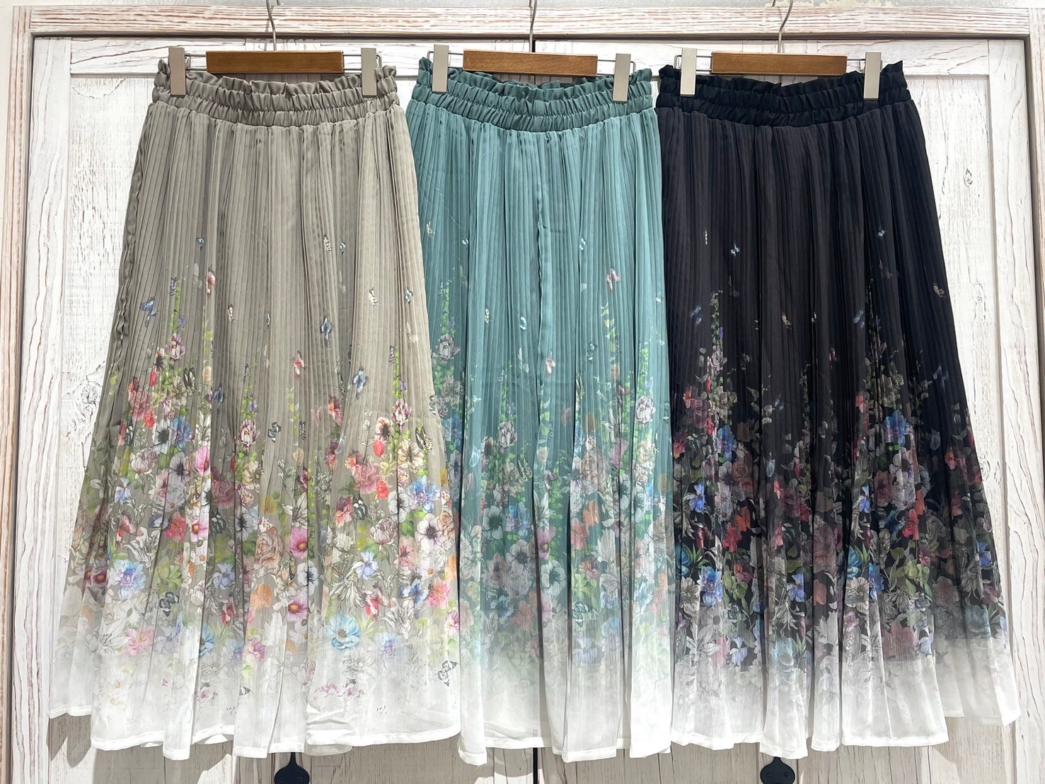 裾部分に花柄プリントをあしらった華やかなスカート★
