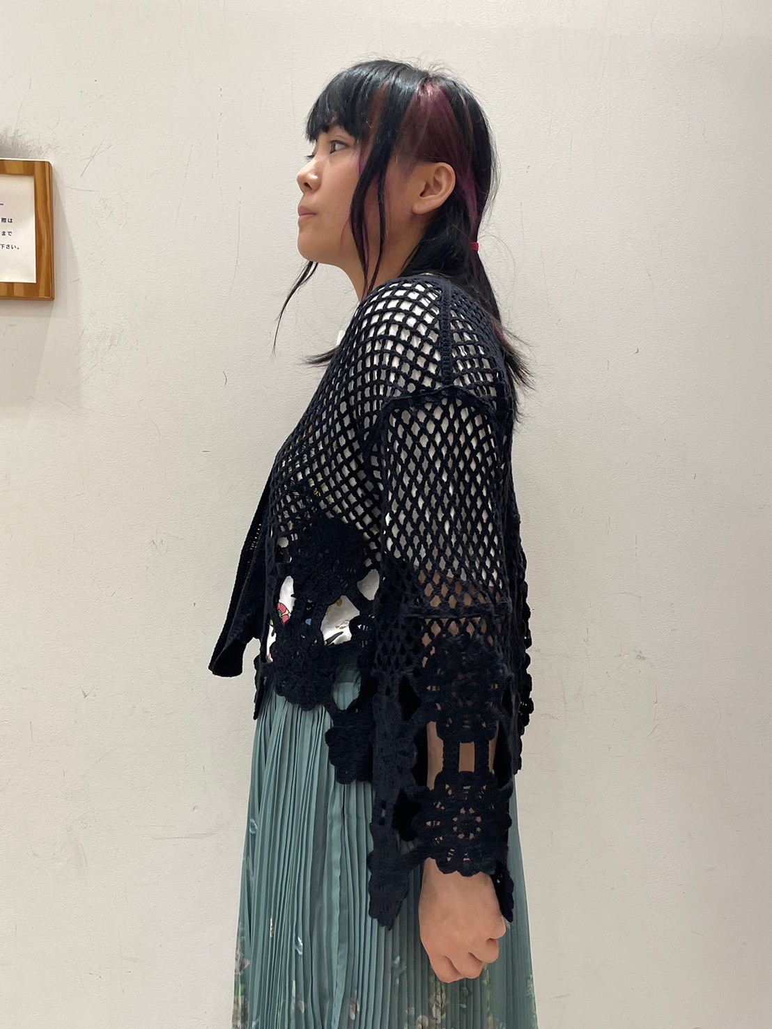 ▽かぎ針風ニットショート丈カーディガン