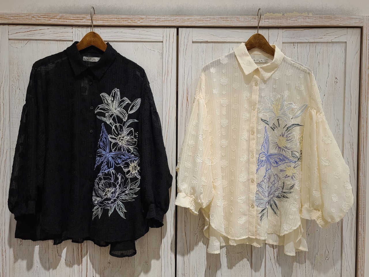 ▽花蝶柄刺繍ブラウス