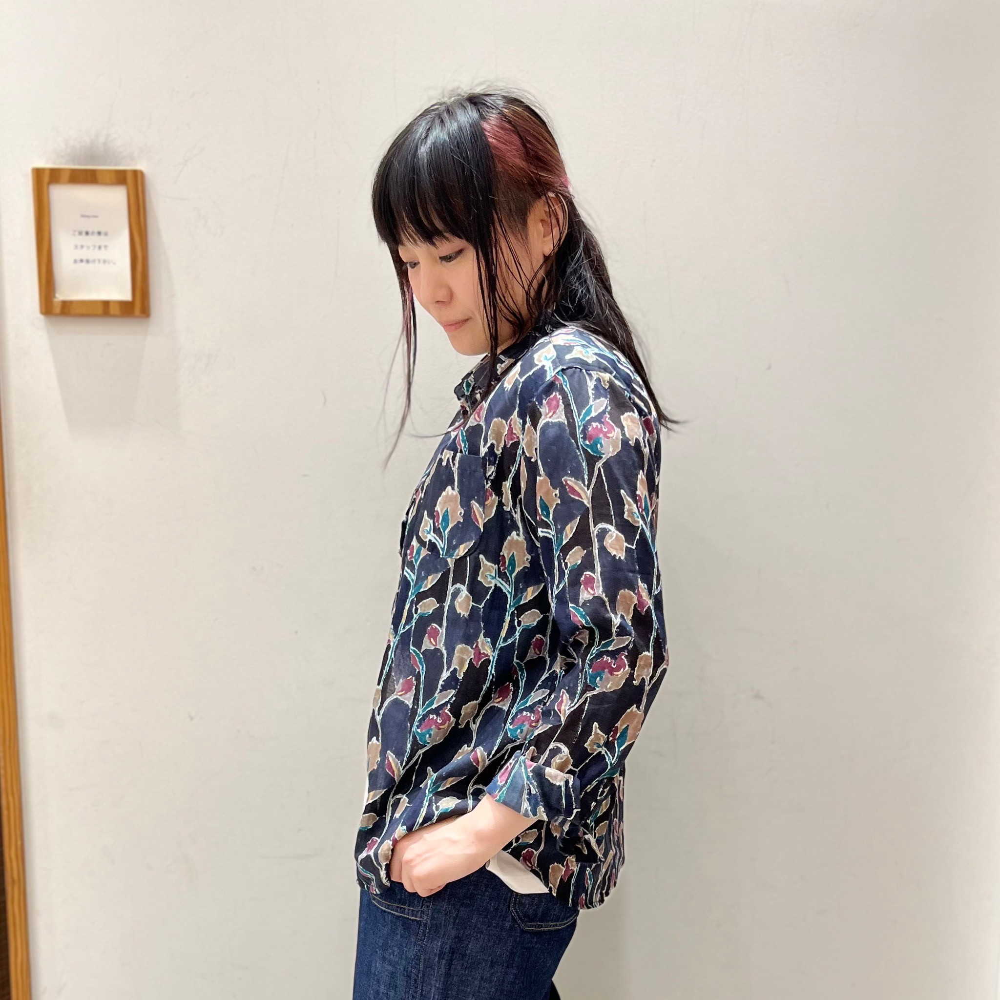 ▽コードコットンパネルフラワープリントシャツ