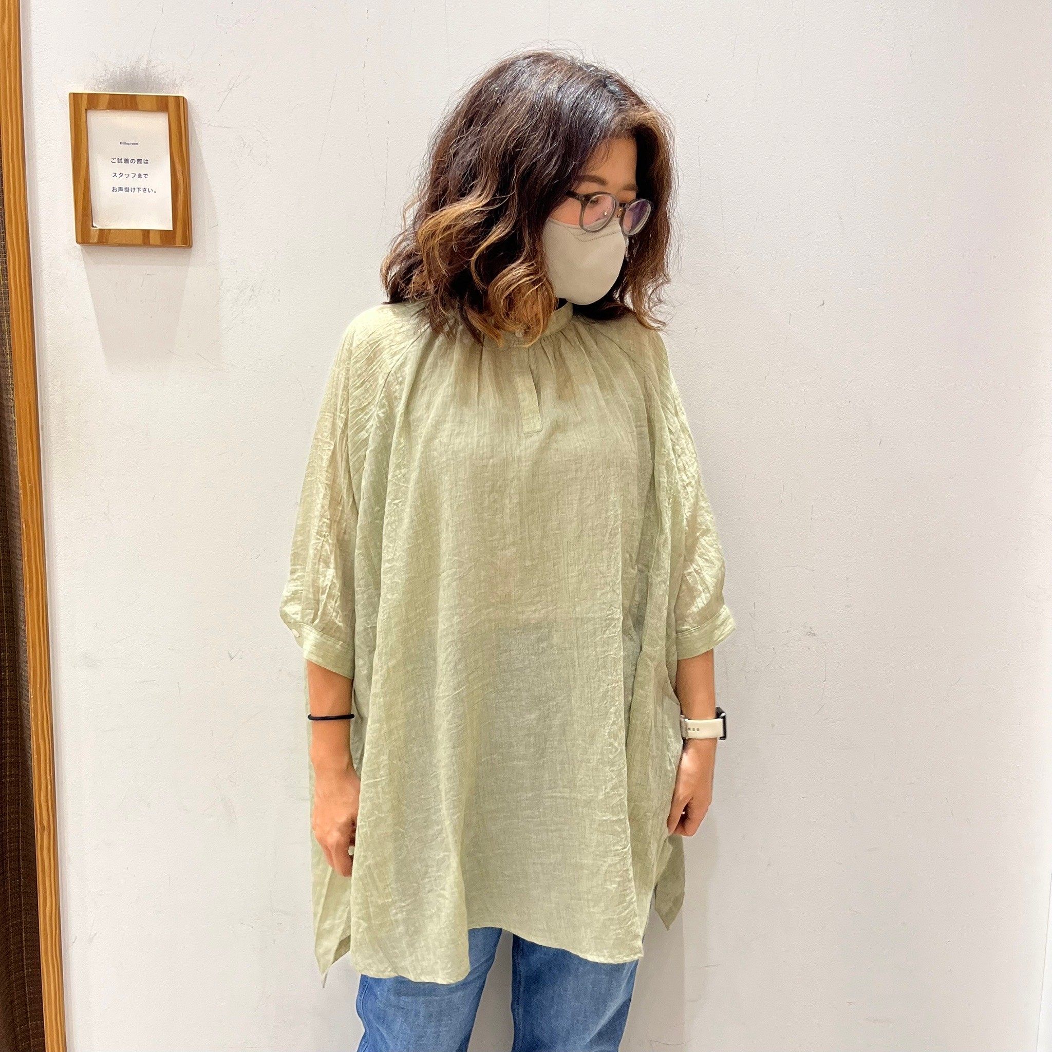空気をたっぷり含む程よく透け感のあるチュニックブラウスに程よく加工感がありカジュアル感をちょっとUPさせたナチュカジュStyle!!