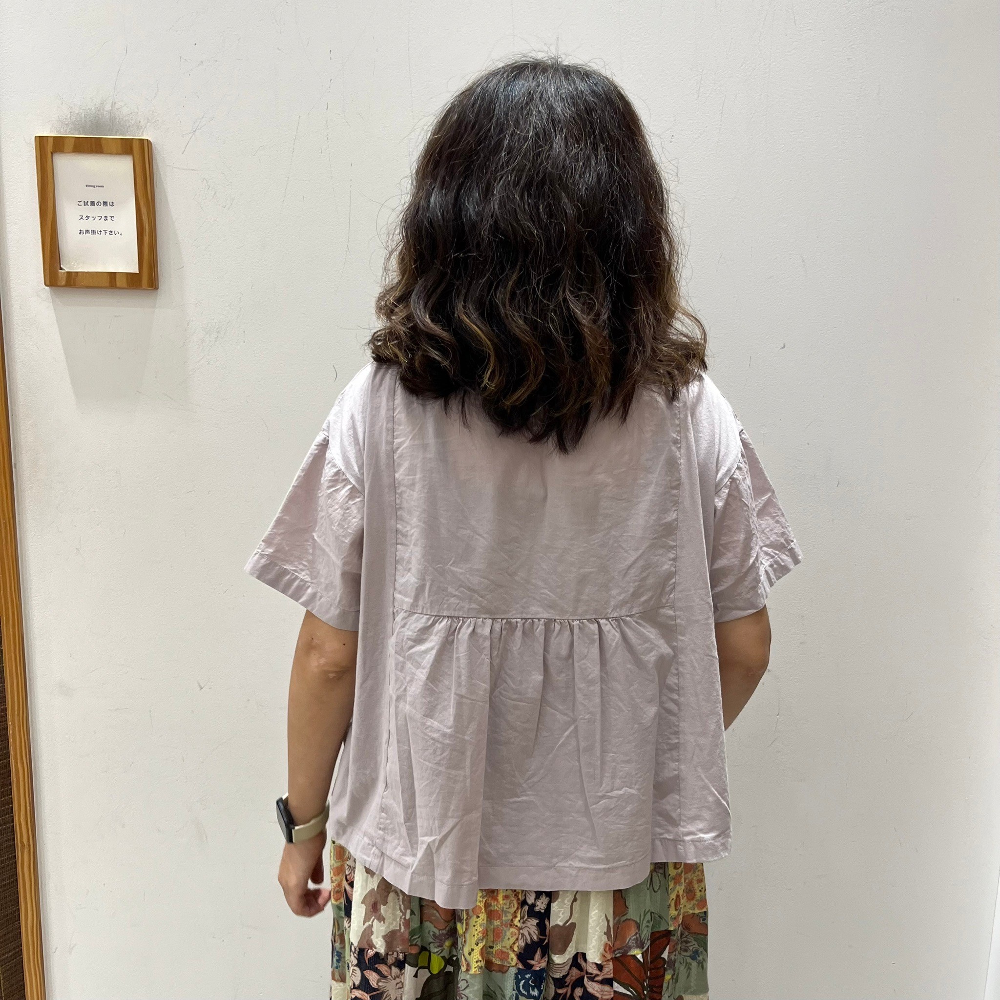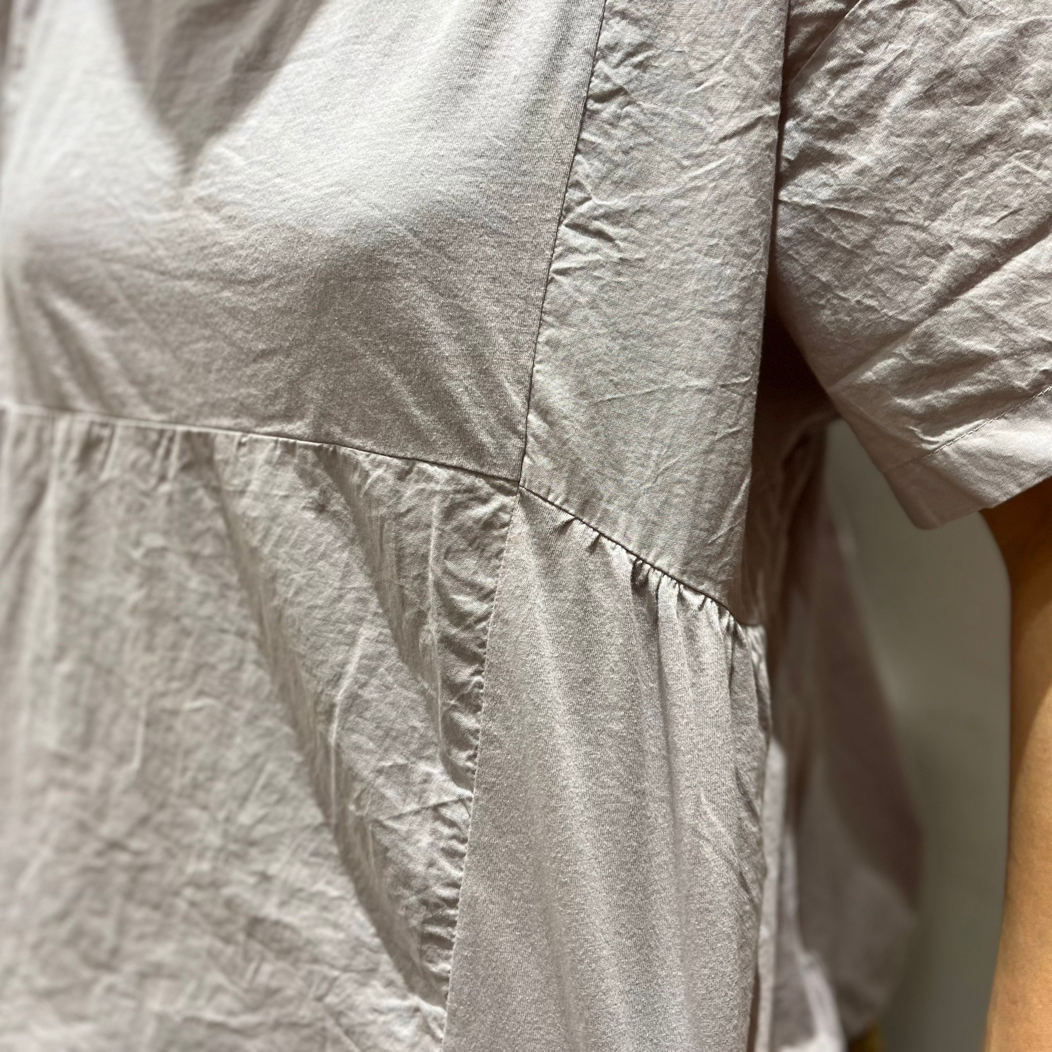 正面上がカットソー生地で伸縮性に優れていて、サイドからお袖にかけて肌に引っ付きにくいコットンローンを使用しているのでTシャツ感覚で着れますがカジュアルすぎないのがgood★
