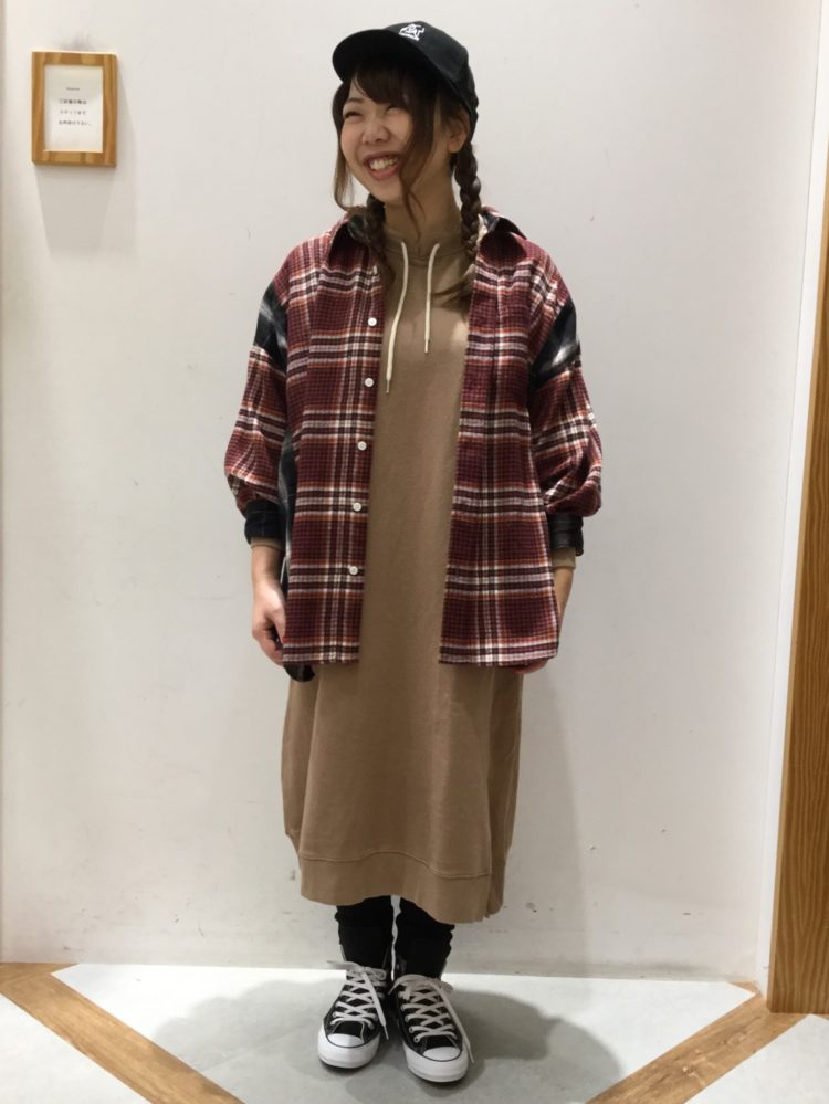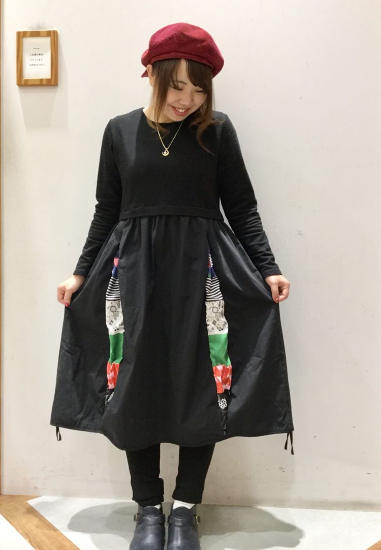【ミニ裏毛布帛ミックス柄ワンピース】