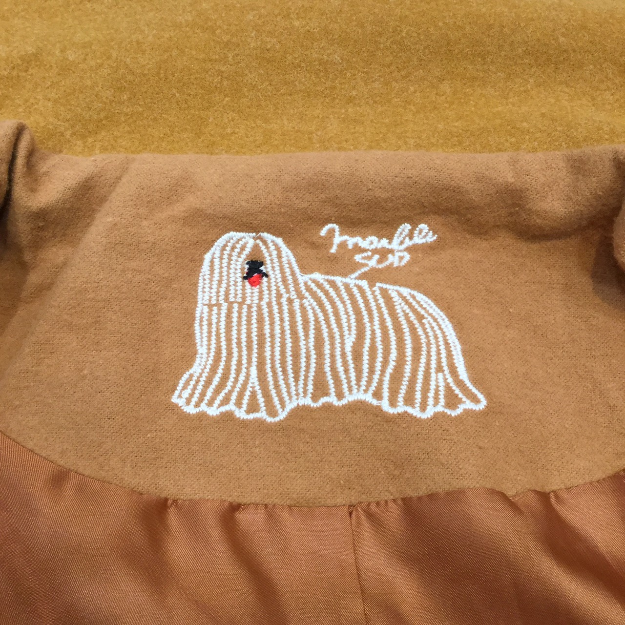 ブランドネーム&コモンドール(犬種)のステッチが入り、