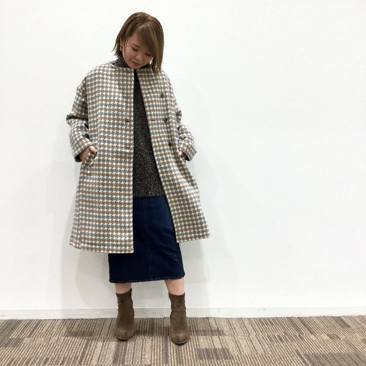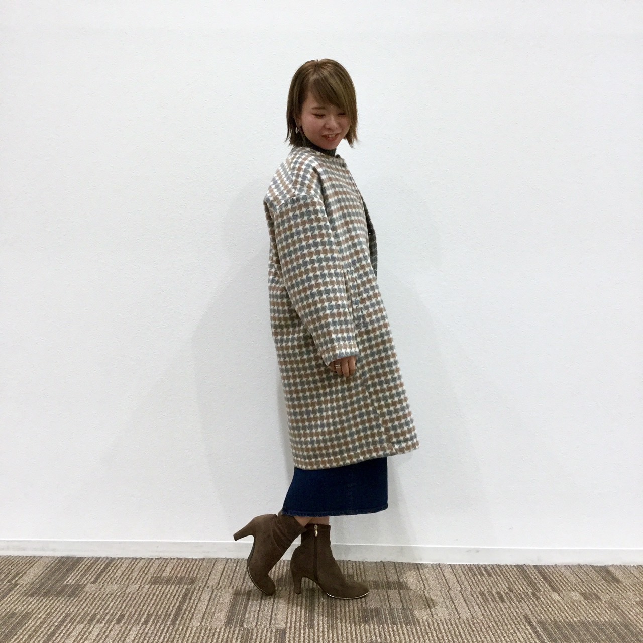 ボトムスが相性抜群のコートとなっております♪
