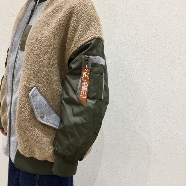 ナイロン×ボアの異素材のミックスデザインは