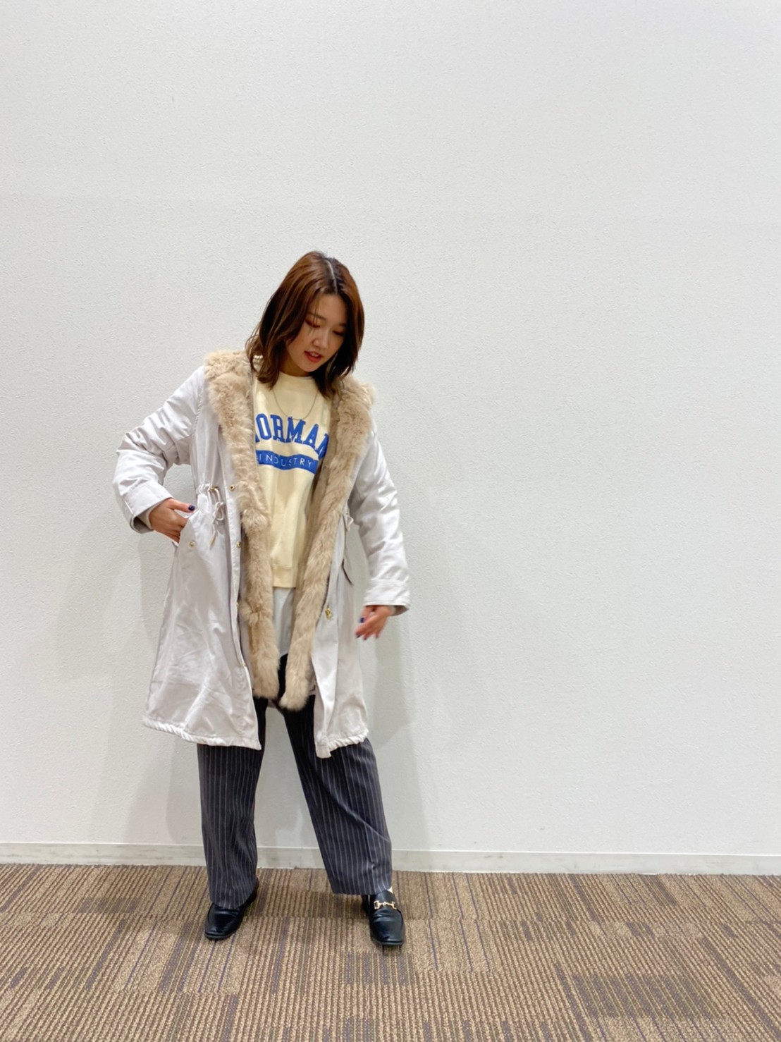 カジュアルになりすぎないよう上品なアウターを合わせてバランスをとってみました(^^)/