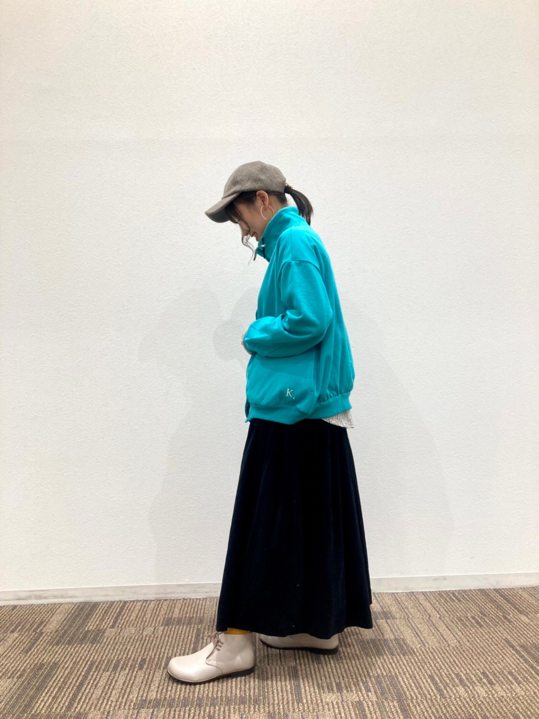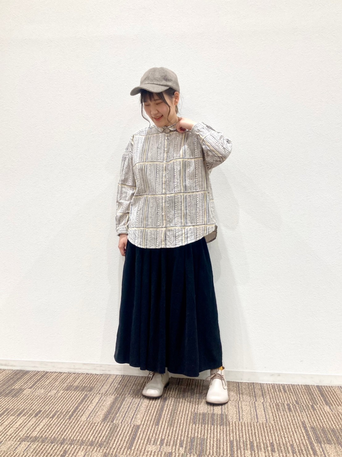 柔らかなコーデュロイの裏地付きスカートを合わせてみました。