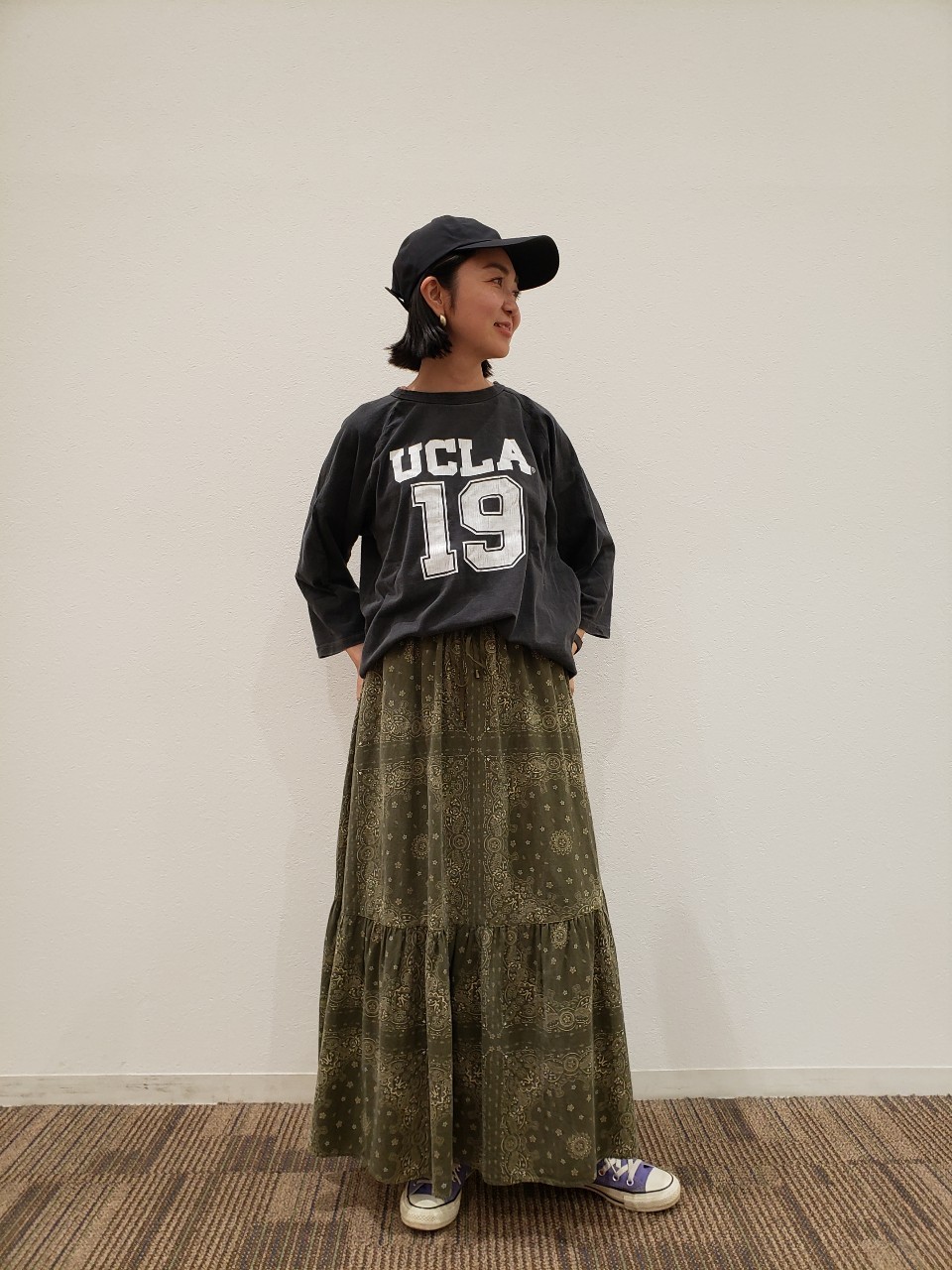 Tシャツは、スカートにインしてもアウトにしてもどちらも可愛く仕上がります😊