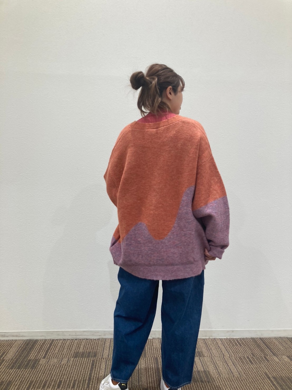 柄物のインナーや、フード付きパーカー等合わせてもOK👍 –
