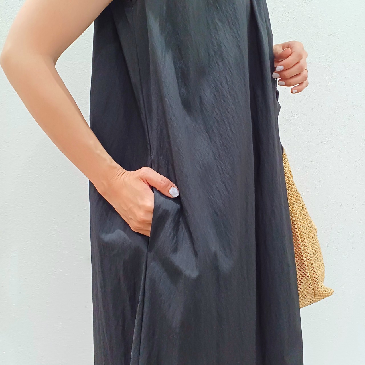 こちらのワンピースは、シャリシャリとした素材。少し光沢感があり1枚で着用しても透け感がないので、暑くムシムシした季節にはピッタリ!