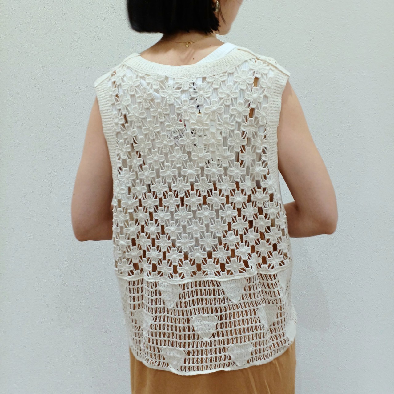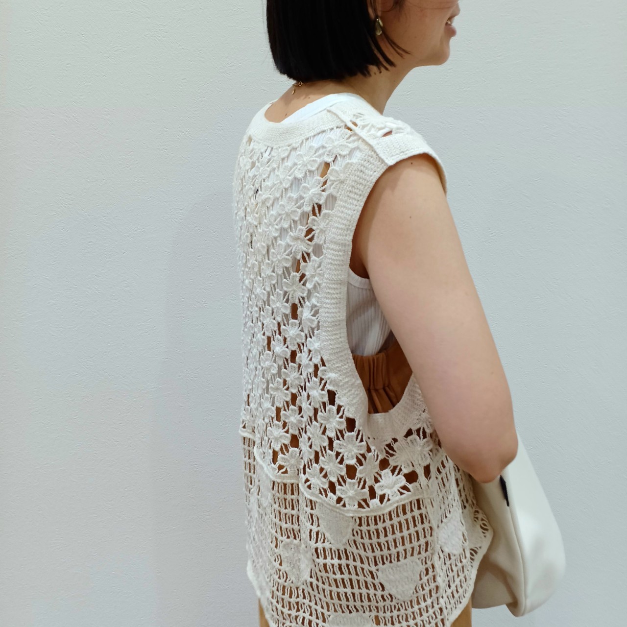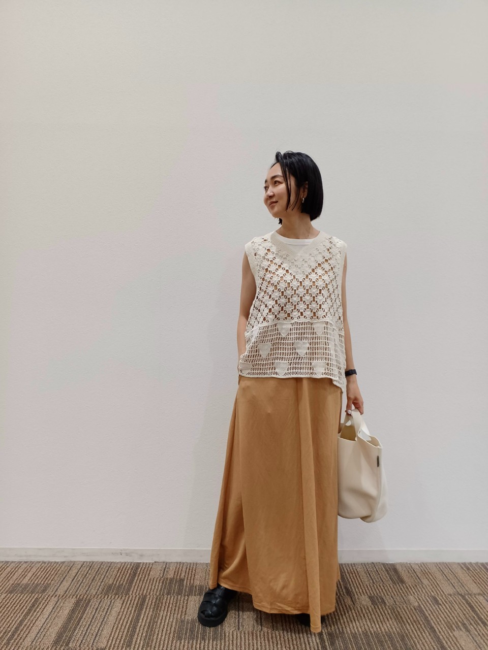 透かし編みベストを重ねて、同系色カラーでコーディネートしました!