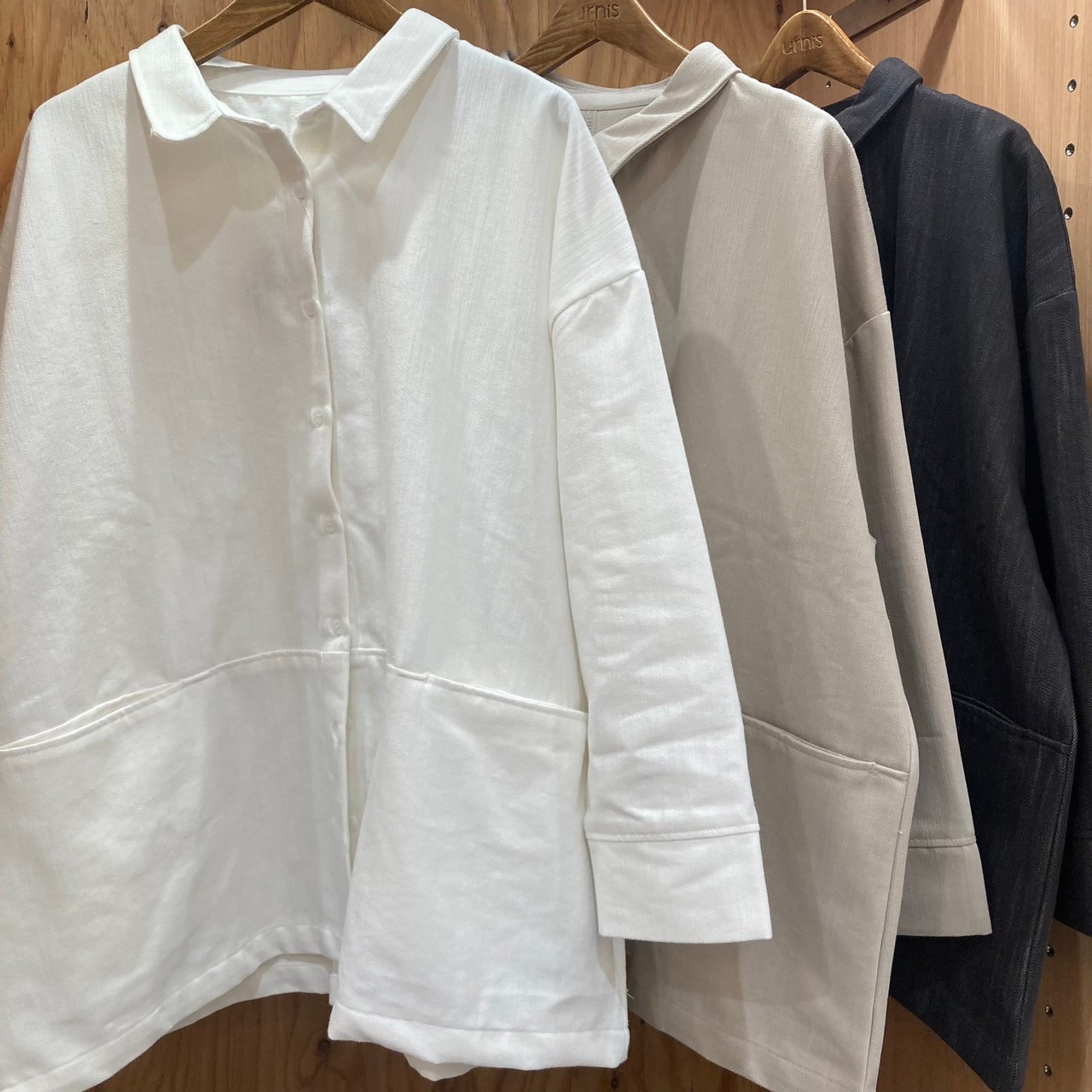 シャツ×ボトムスでカッコ良く着てみましたが、ワンピースやスカートと合わせると一気にナチュラルに変身し、様々なアイテムにマッチしてくれます✨️