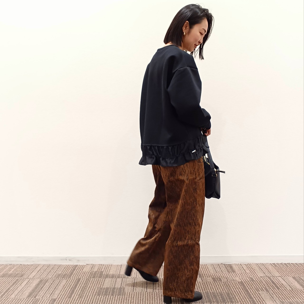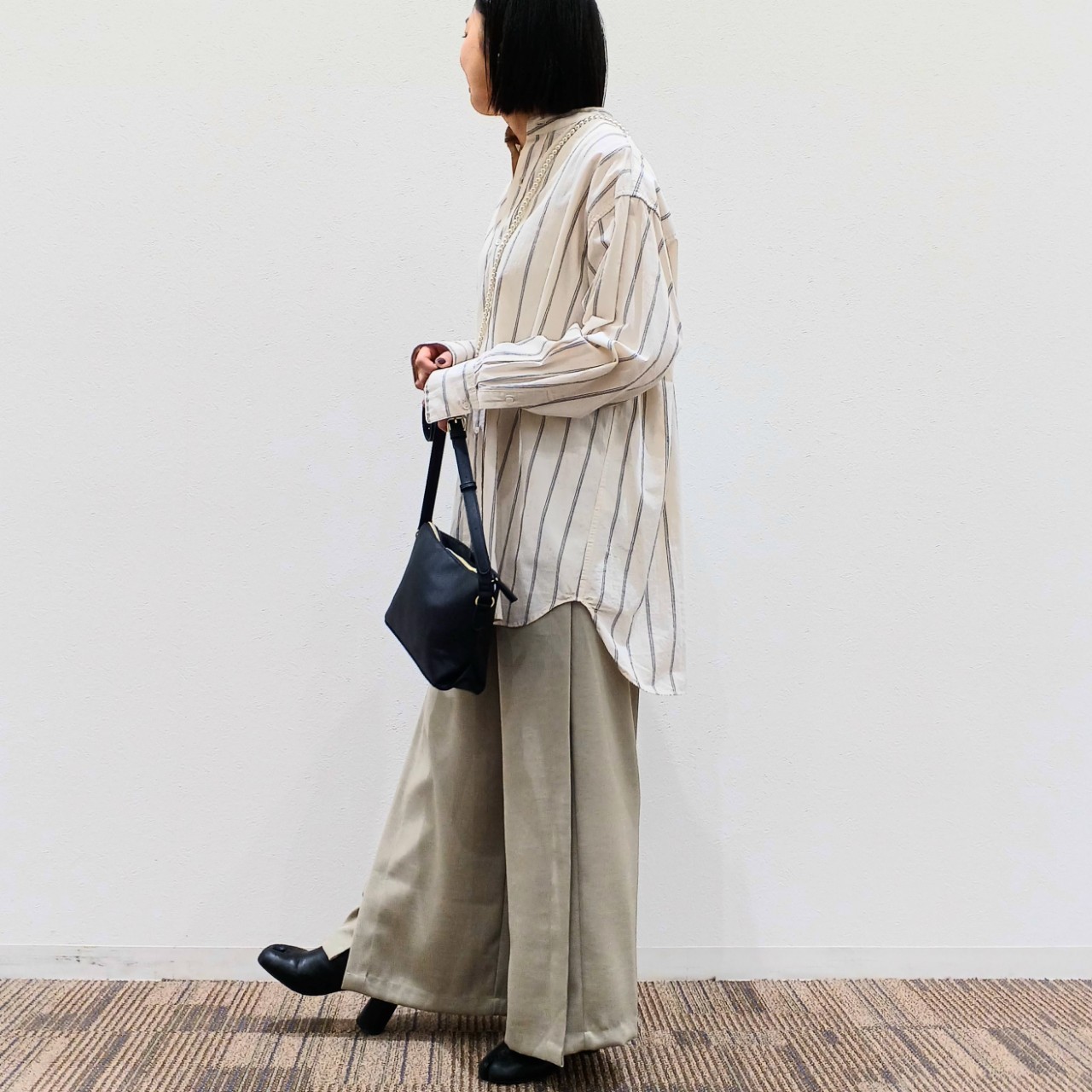 パンツは、さらさらとろみのある巻き風ワイドパンツ!少し光沢感もある生地です。