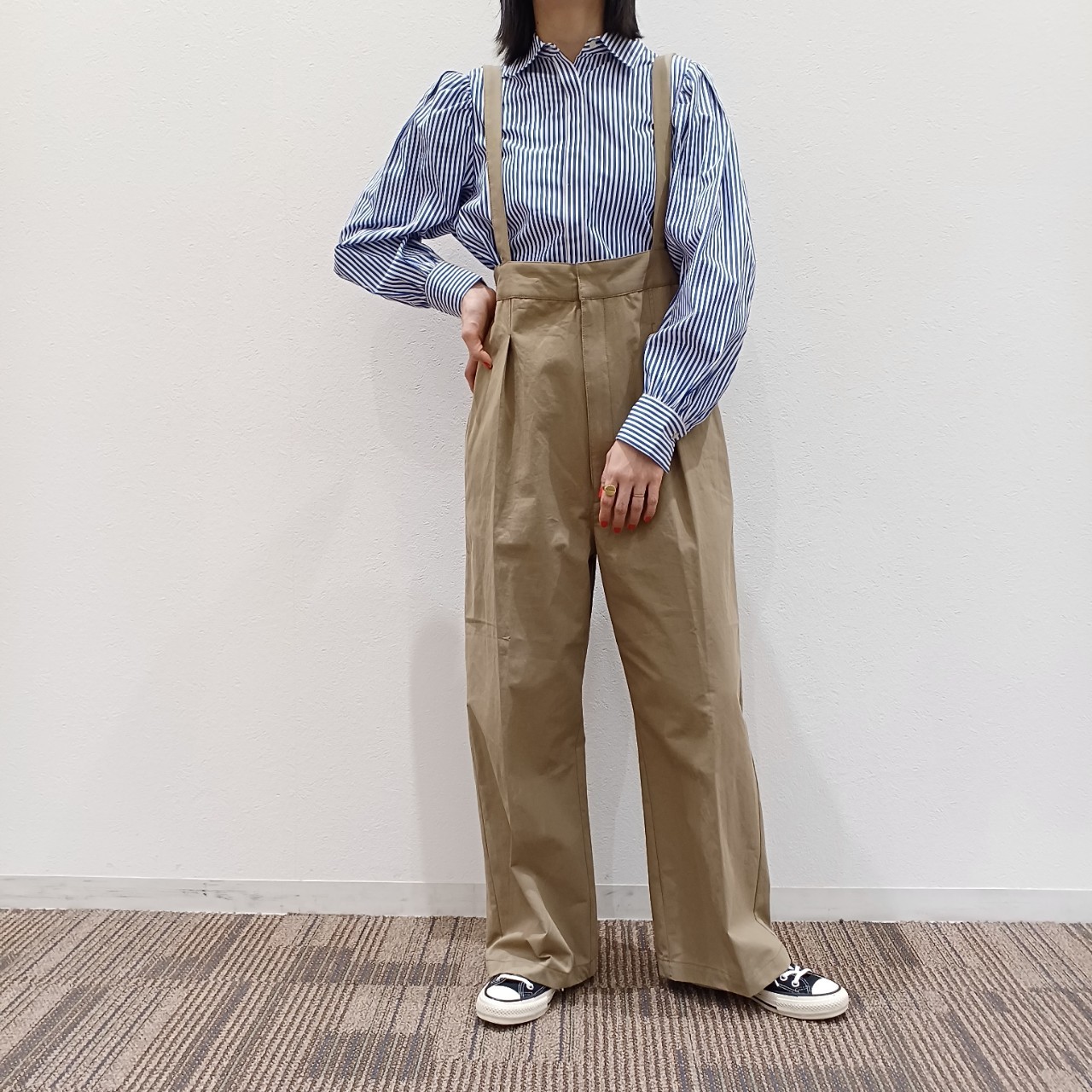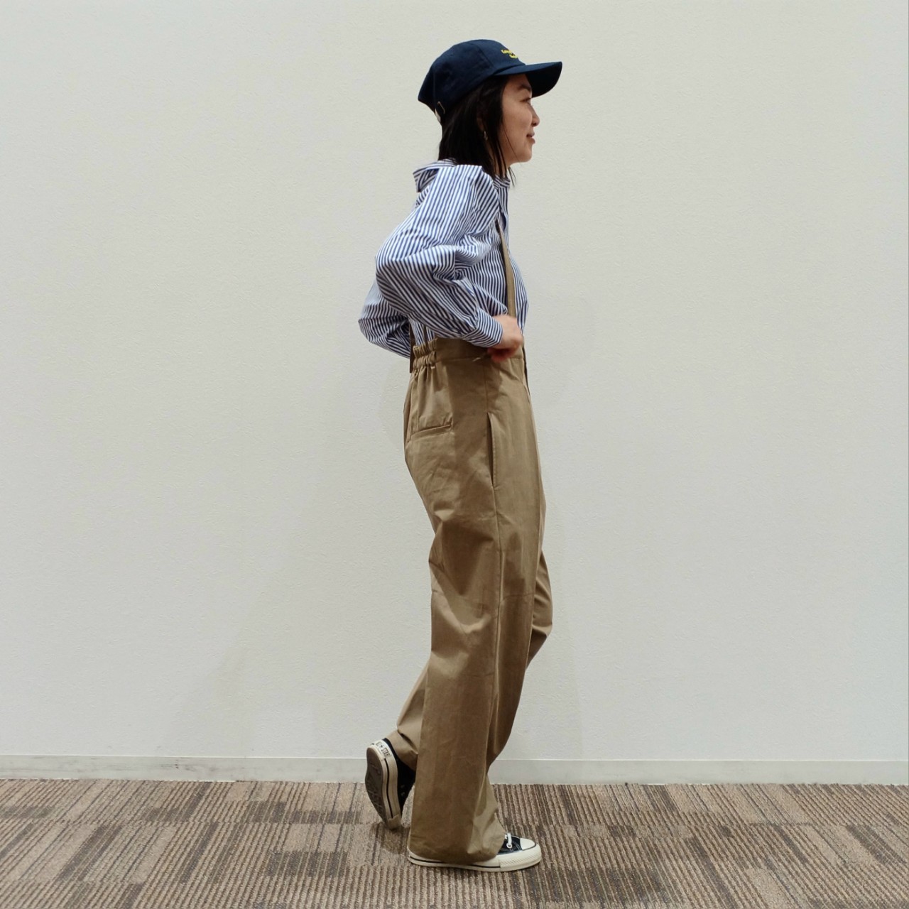 筒が広めなワイドシルエットですが、タックが入っているのでセンターラインが強調され綺麗な印象になります♪
