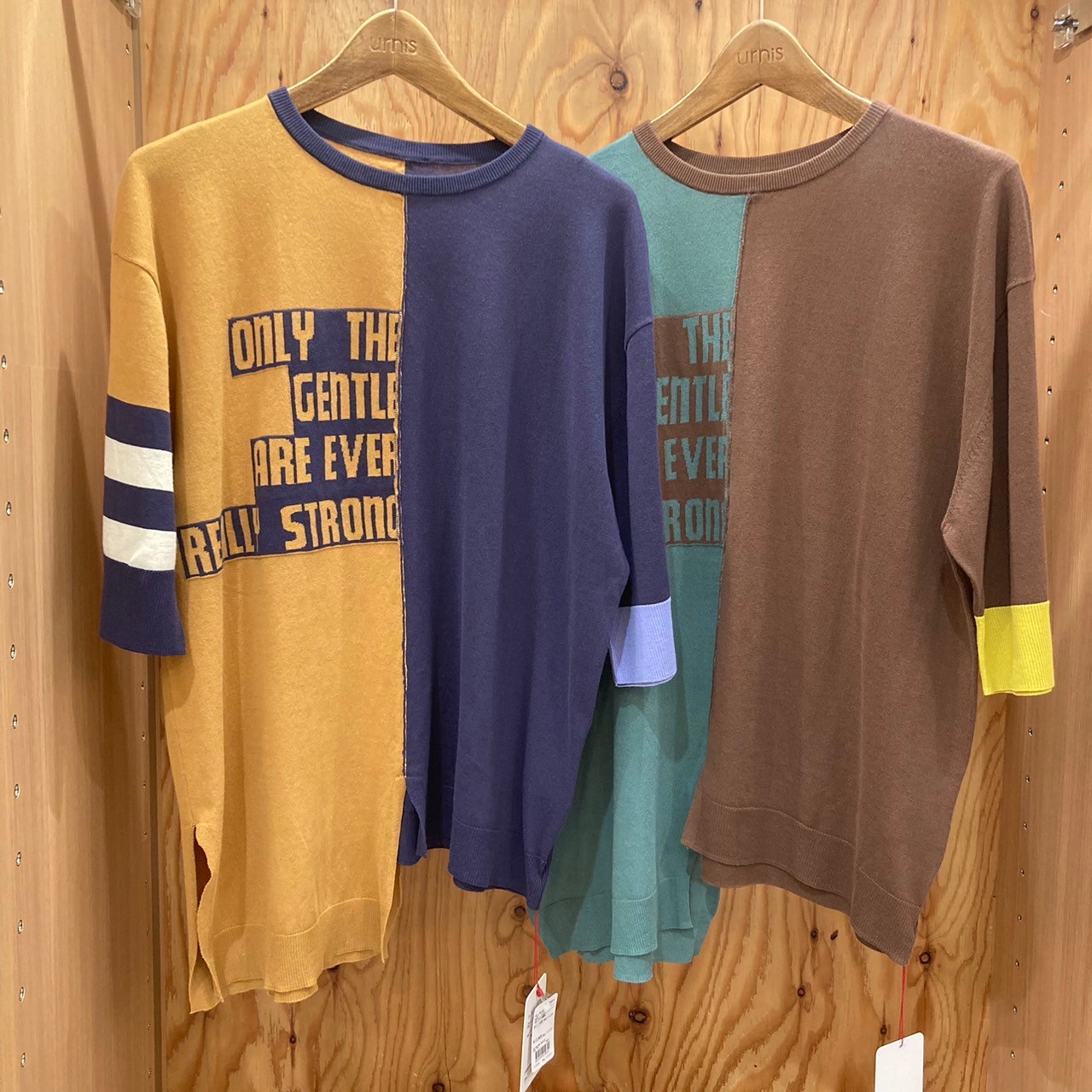 ニットでは珍しいアシンメトリーでロゴ入りのデザイン✨️