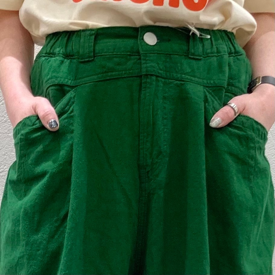 先ずは目に飛び込んでくる鮮やかグリーンのパンツ