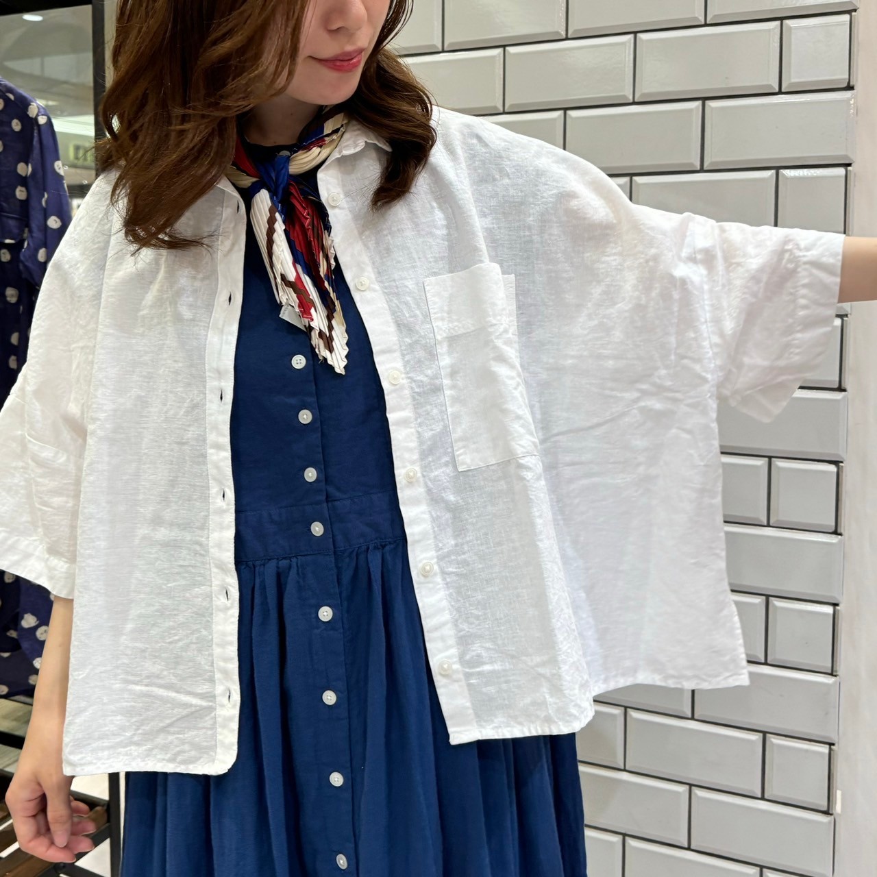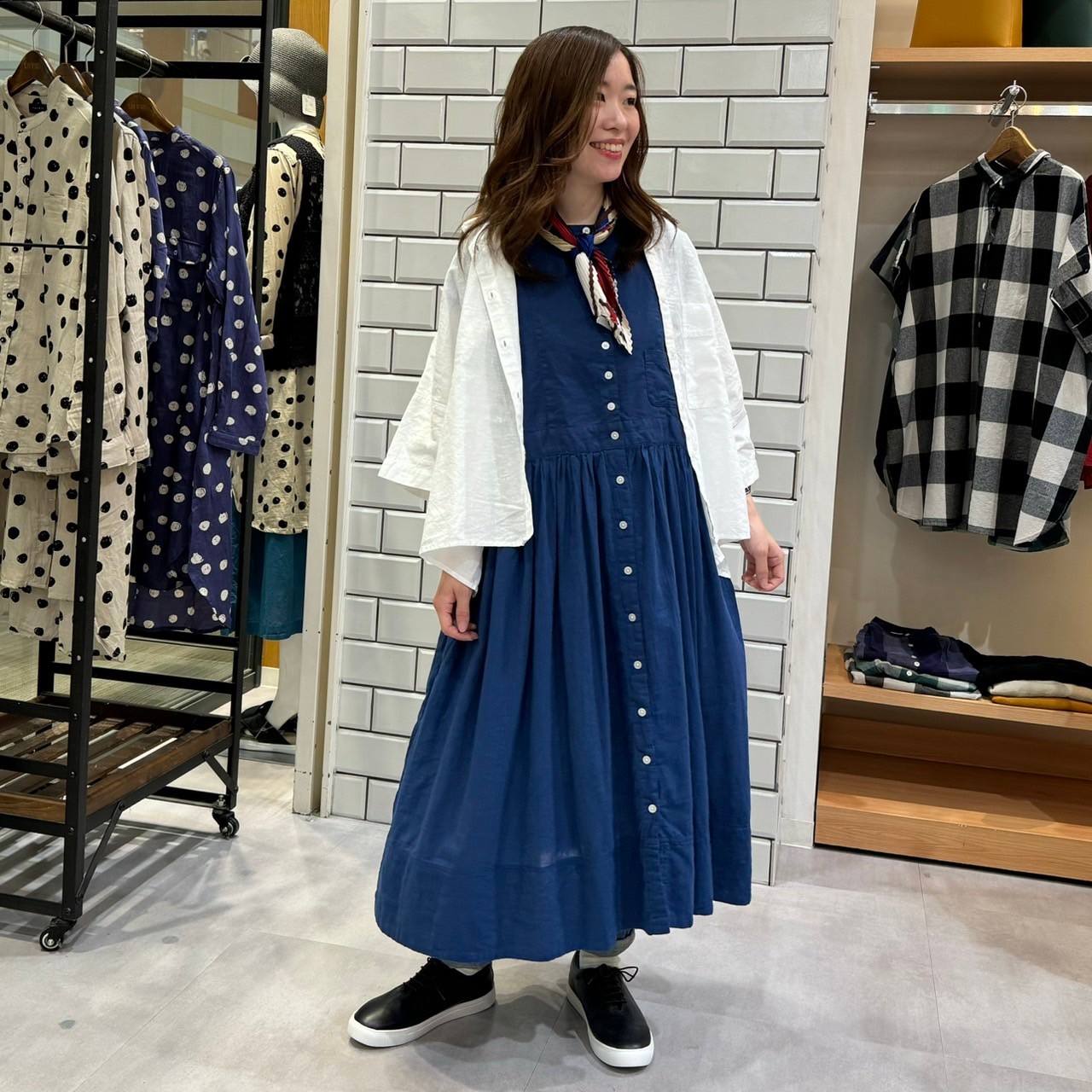 ワンピースと羽織っているシャツどちらも綿麻素材です。
