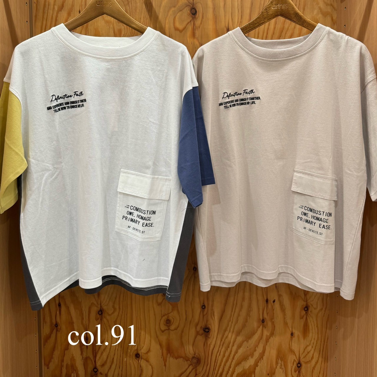 16/-OE天竺異素材ポケットロゴプルオーバー