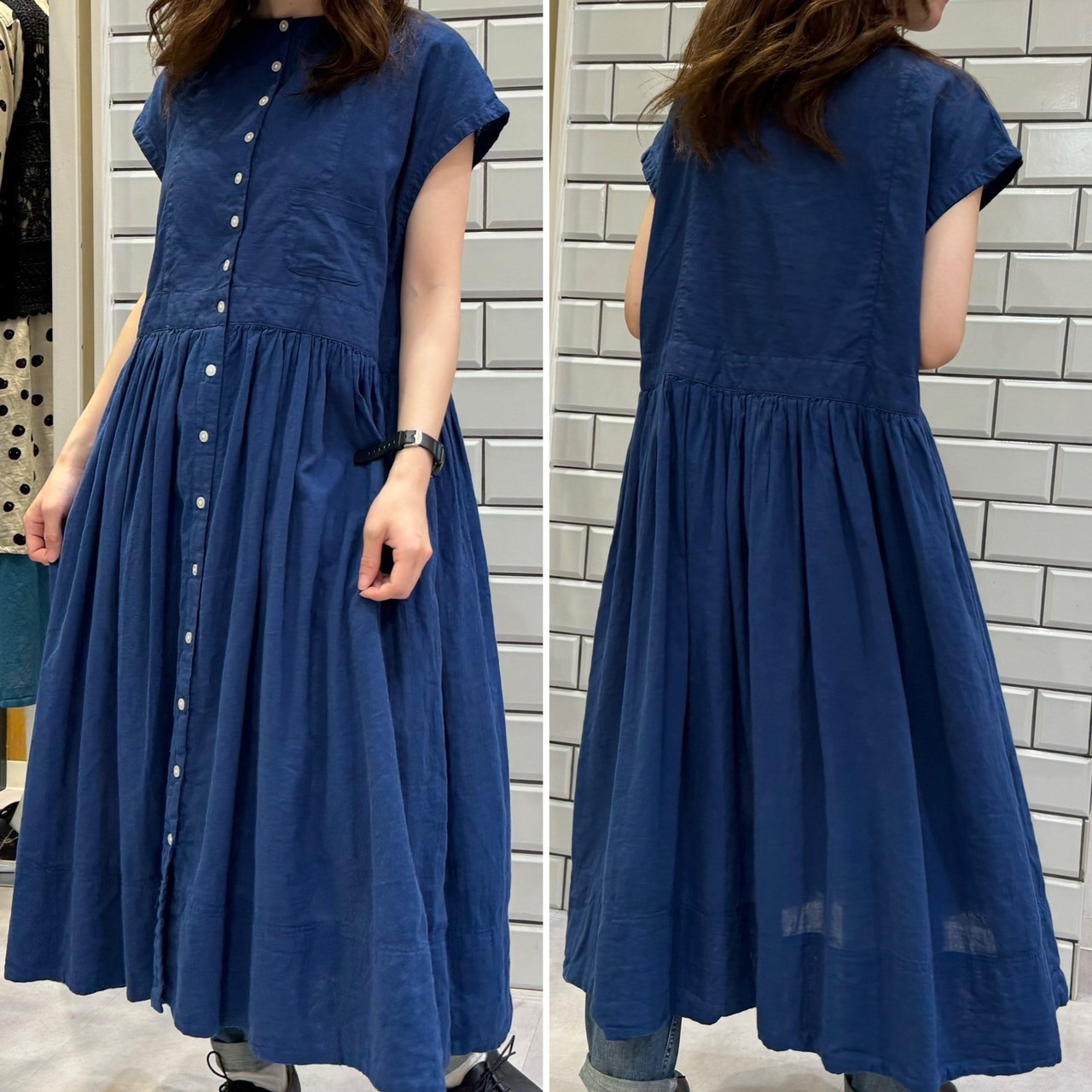 別注 21綿麻平織フレンチ袖切替ワンピース
