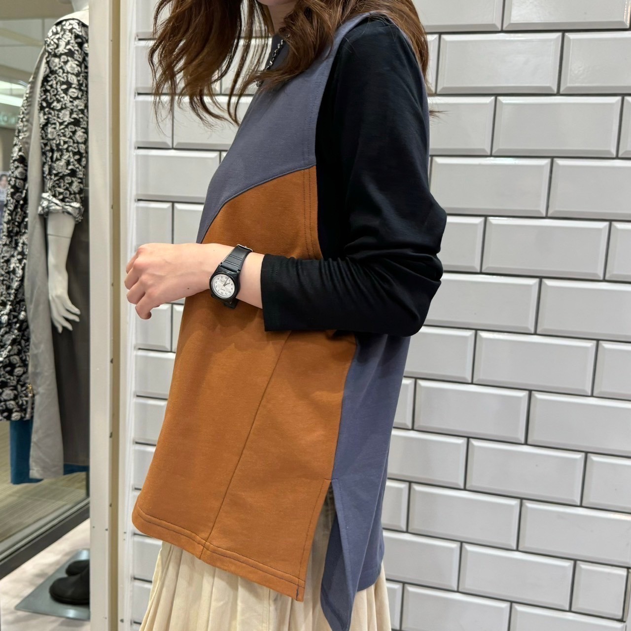 裾のラウンドがお腹やヒップ周りをカバーしてくれます✨