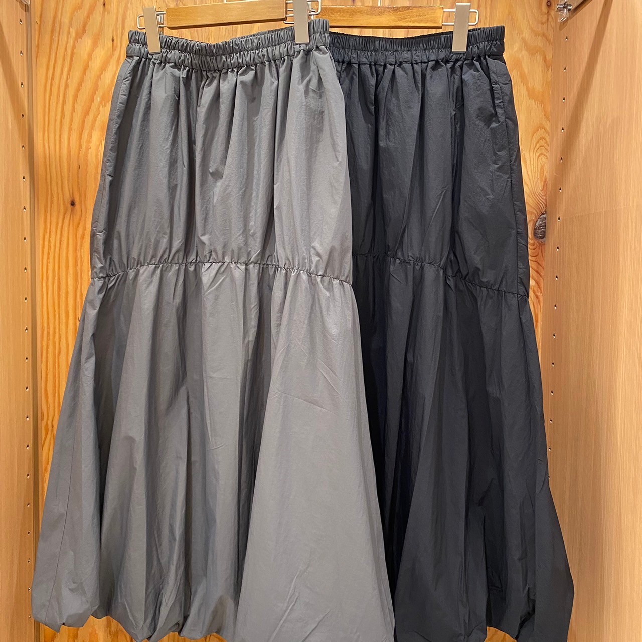 スカートは、ふんわりとしたシルエットが女性らしいバルーンスカート✨