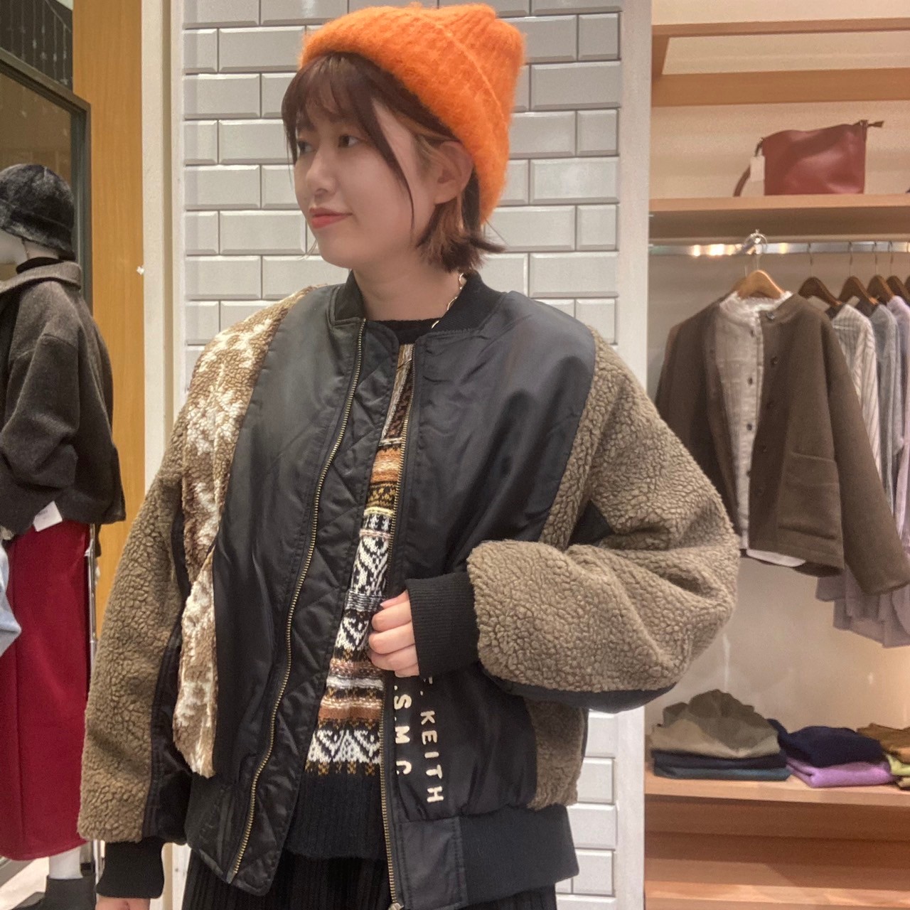 ボアは無地と迷彩・オルテガ柄で、袖もナイロンとボアで切り替えた贅沢なデザイン!!