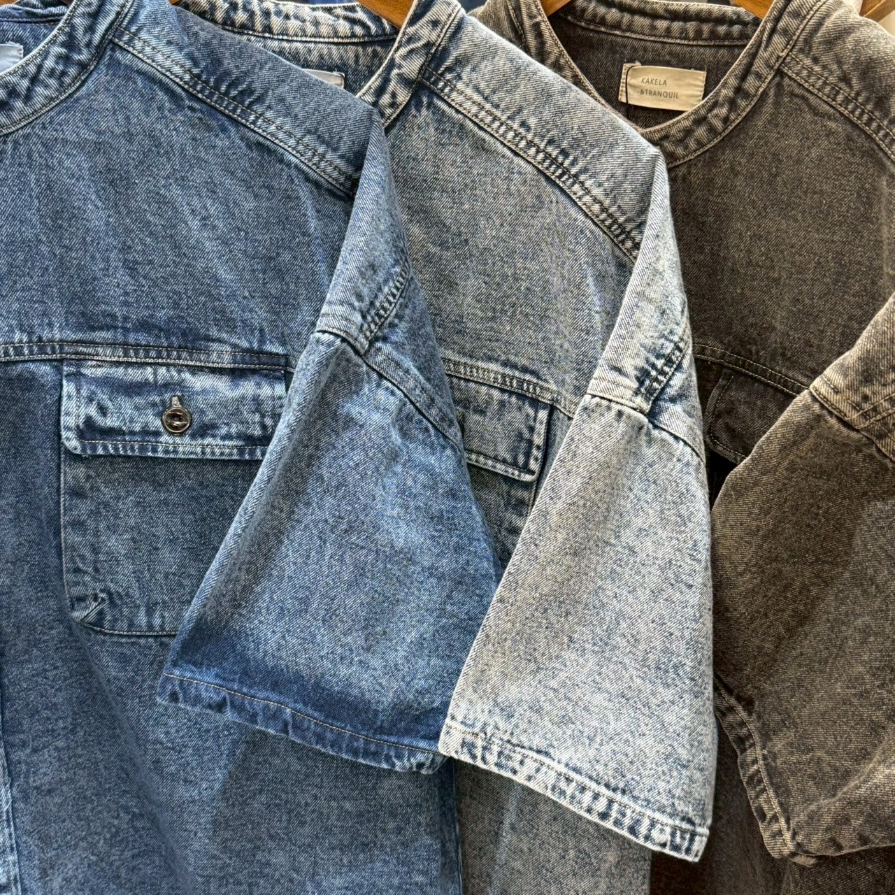 デニムケミカル加工スタンドシャツ