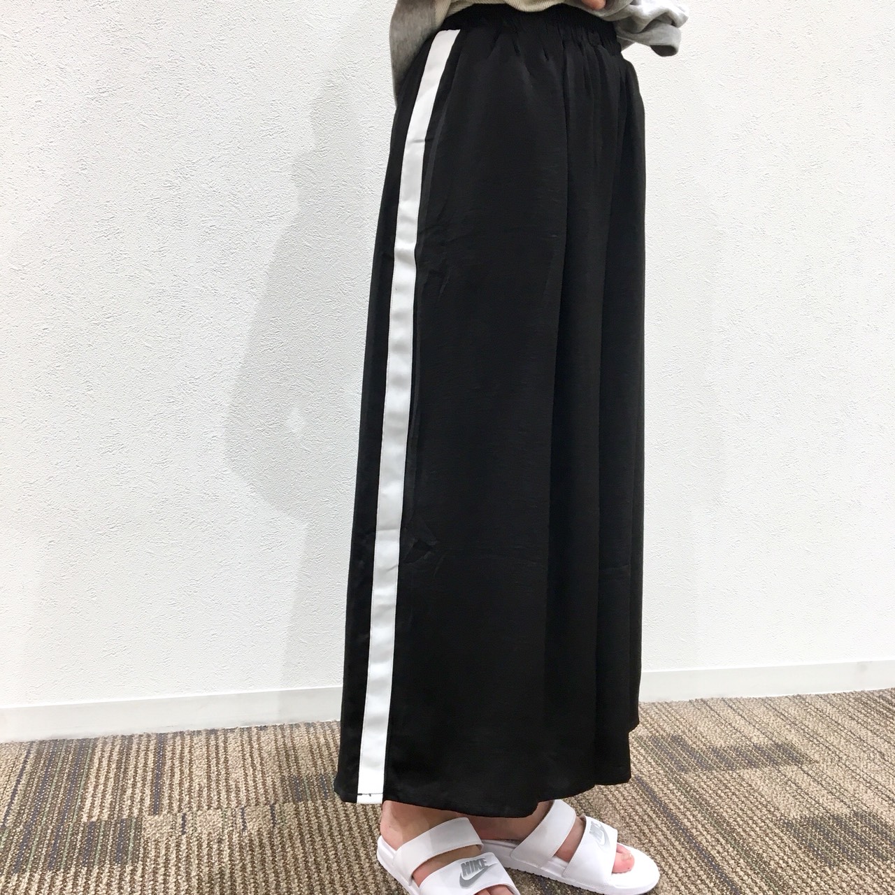 ライン入りのワイドパンツは、とにかく試着して頂きたい一枚!!