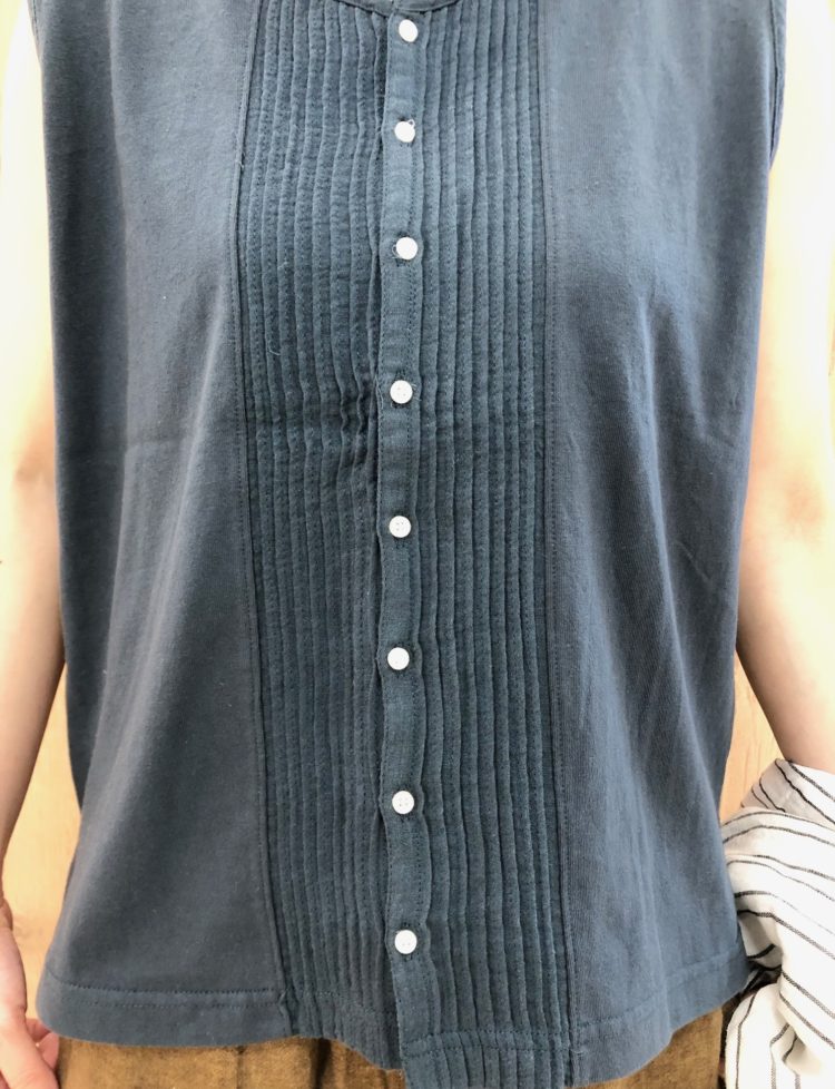 天竺ガーゼピンタック前開きタンク