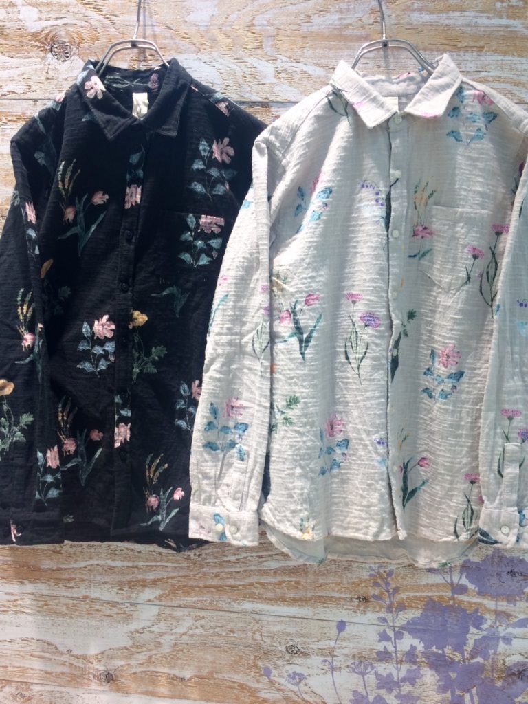 微起毛手描き花柄シャツ
