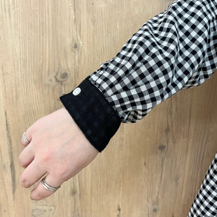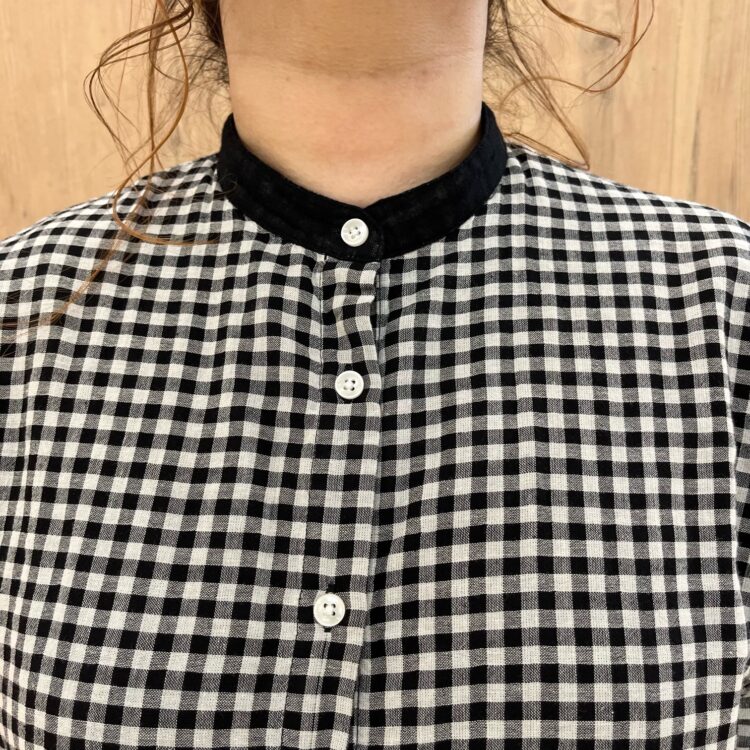 【ダブルガーゼギンガムチェックスタンドカラーSH】